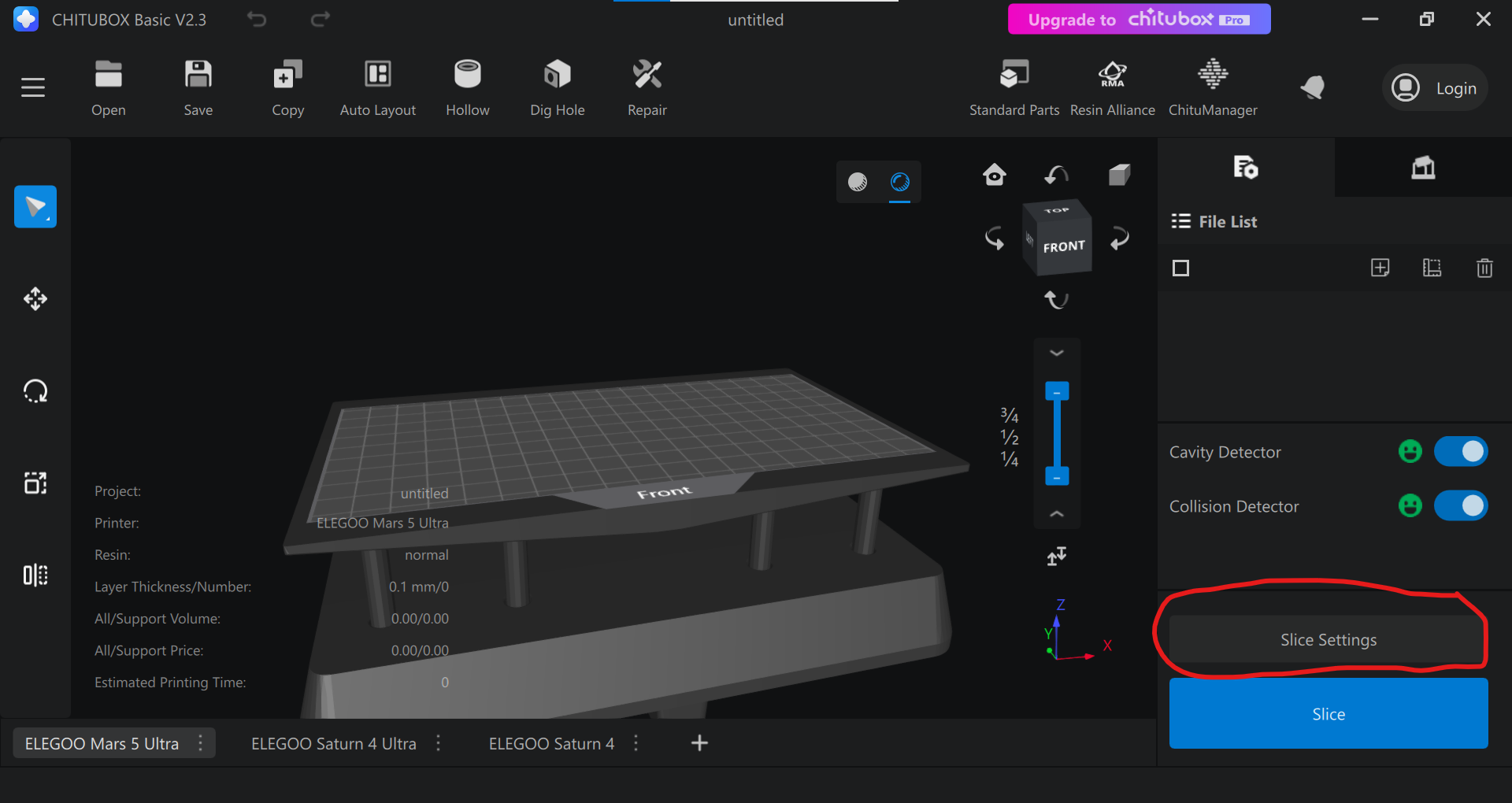 Veuillez slicer votre modèle 3D au format .stl à l'aide du logiciel CHITUBOX, puis exporter votre fichier slicé .ctb sur une clé USB.