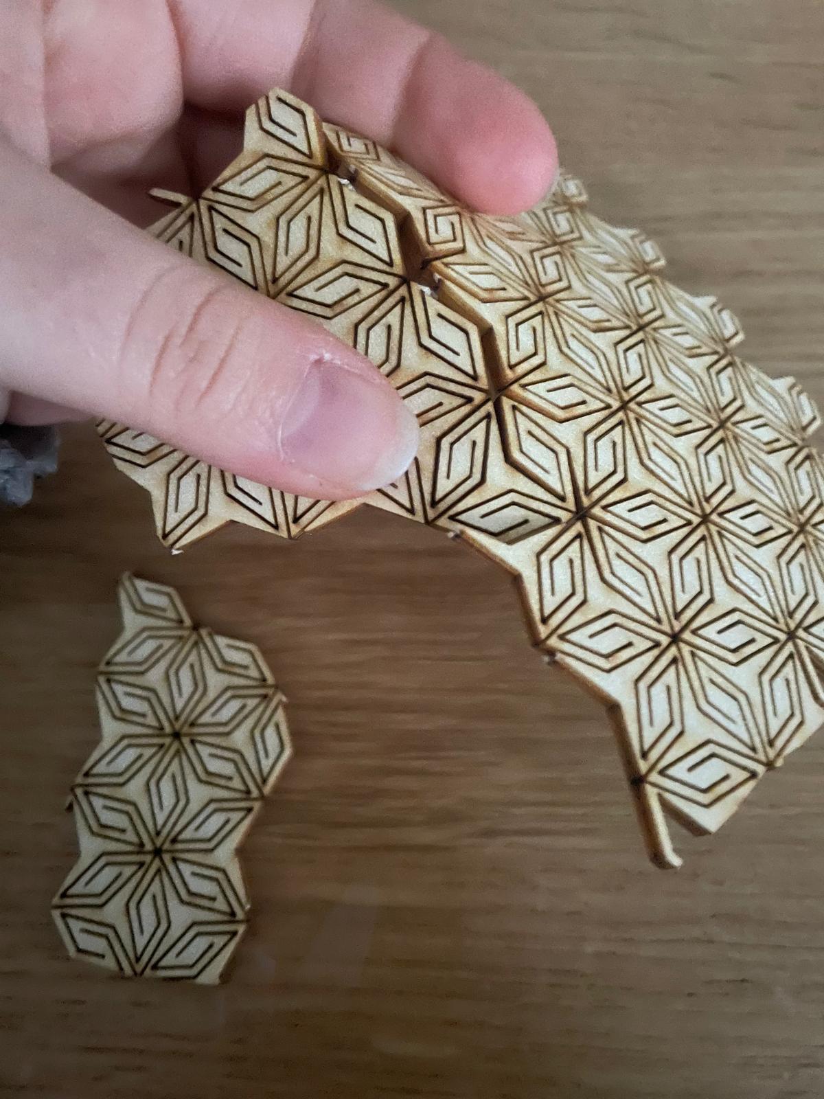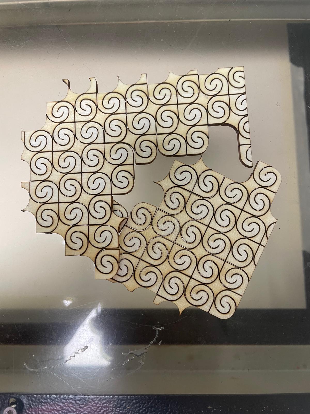Now, we'll be testing the patterns by cutting them in different sizes to see the reaction of the wood to bending and to test its fragility.