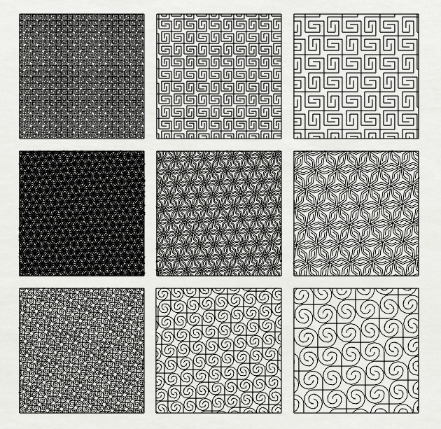 I prepared 9 different tests: each pattern in 3 sizes (1cm, 2cm, and 3cm width).