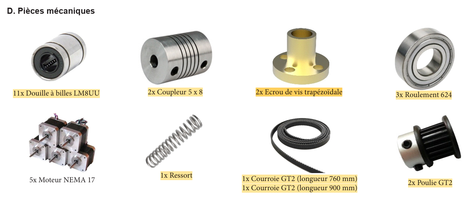 Maillet • Tournevis plat • Tournevis cruciforme • Clé plate 5.5 , 7 et 17 • Clé Allen (fournie) • Clé Allen M4 • Pince plate • Pince coupante • Cutter • Mètre ruban