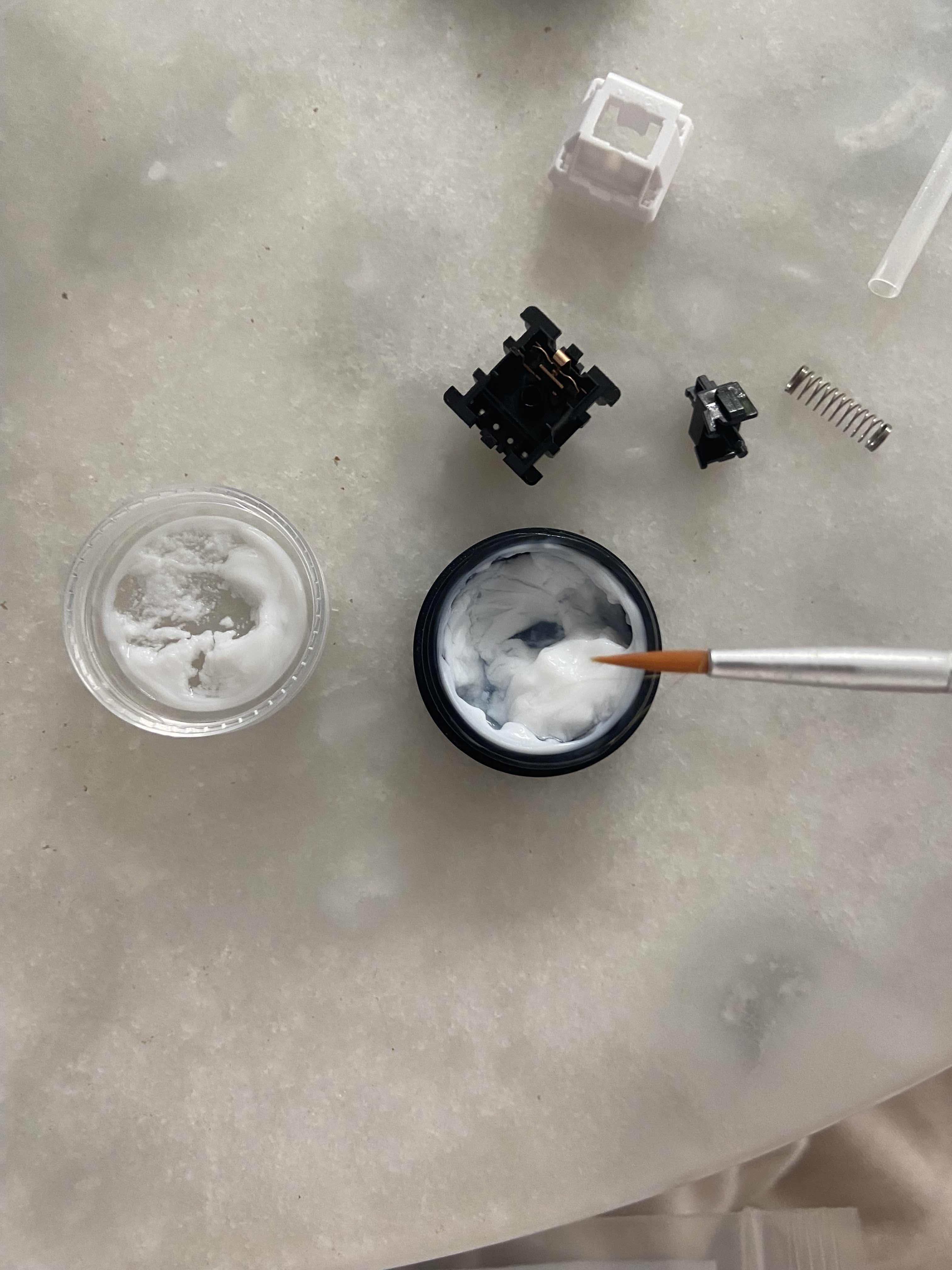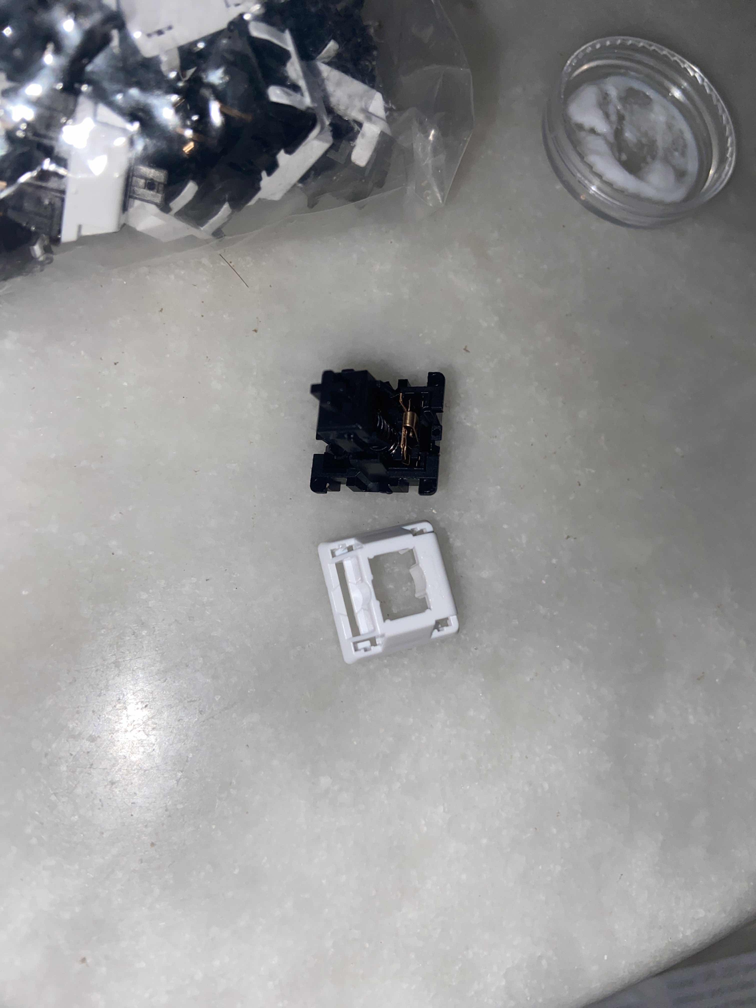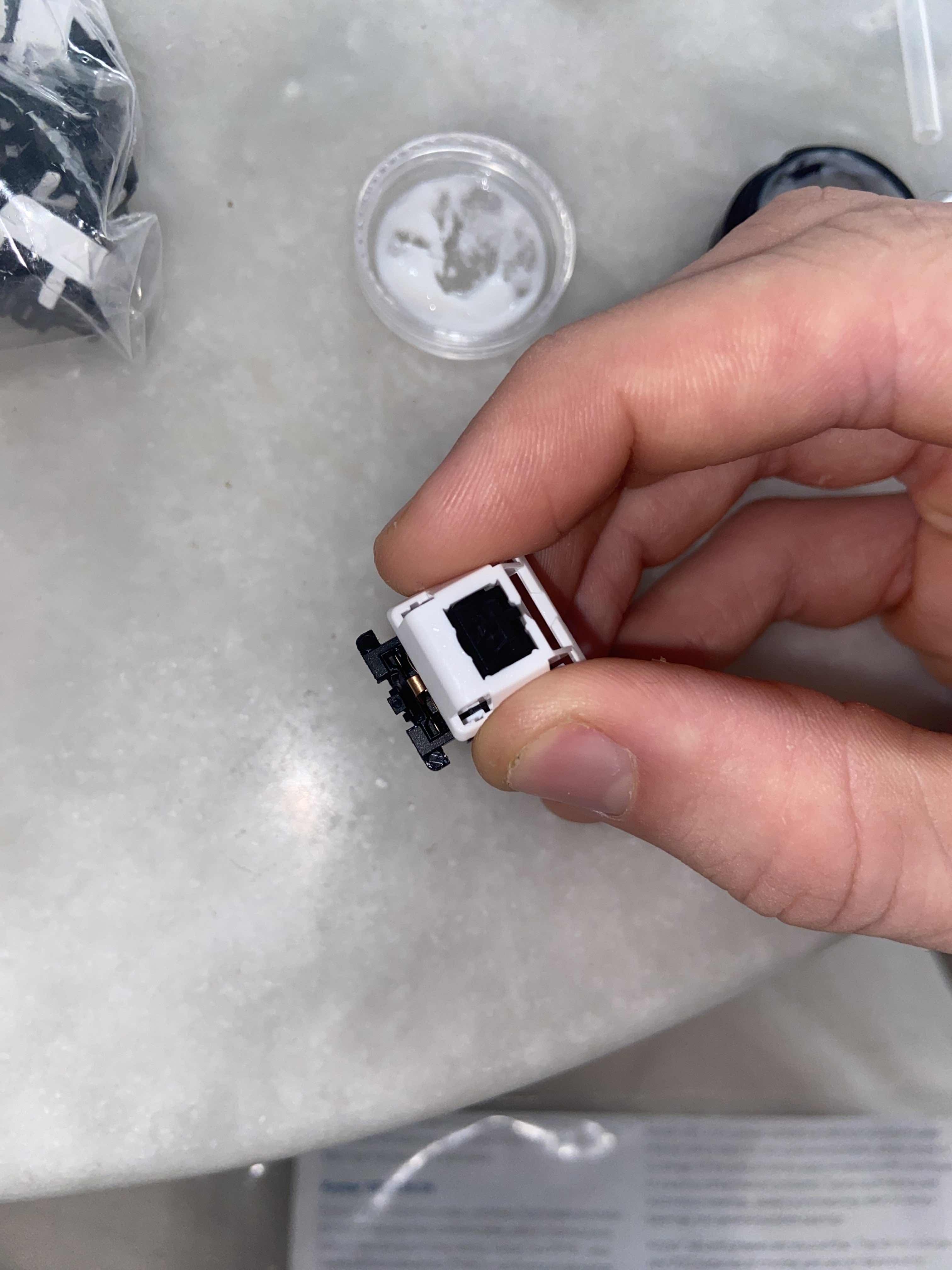 Il y a environ 70 interrupteurs dans un clavier 65%. Cela signifie que 70 interrupteurs doivent être ouverts, lubrifiés et remontés. Chaque interrupteur prenant environ 3 minutes, j'ai décidé de collaborer avec d'autres personnes afin de faire cela plus rapidement, et de ne pas perdre de temps seul sur le projet.