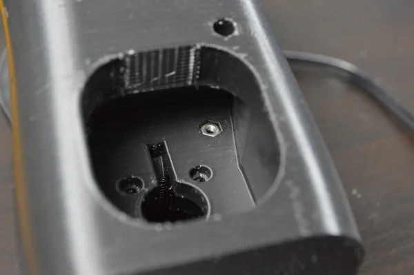 Une fois ce branchement fait, il faut assembler l’avant-bras. Pour cela, commencez par mettre 6 inserts thermofixés M3 dans la pièce.