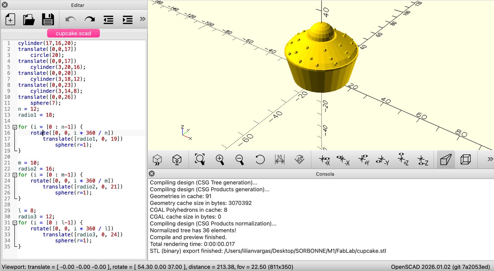 Première approche de la modélisation par le code. L’utilisation d’OpenSCAD a permis de mieux comprendre la construction logique des objets 3D et le lien direct entre conception numérique et fabrication. L’enchaînement OpenSCAD → PrusaSlicer → impression a rendu le processus global plus clair et cohérent.