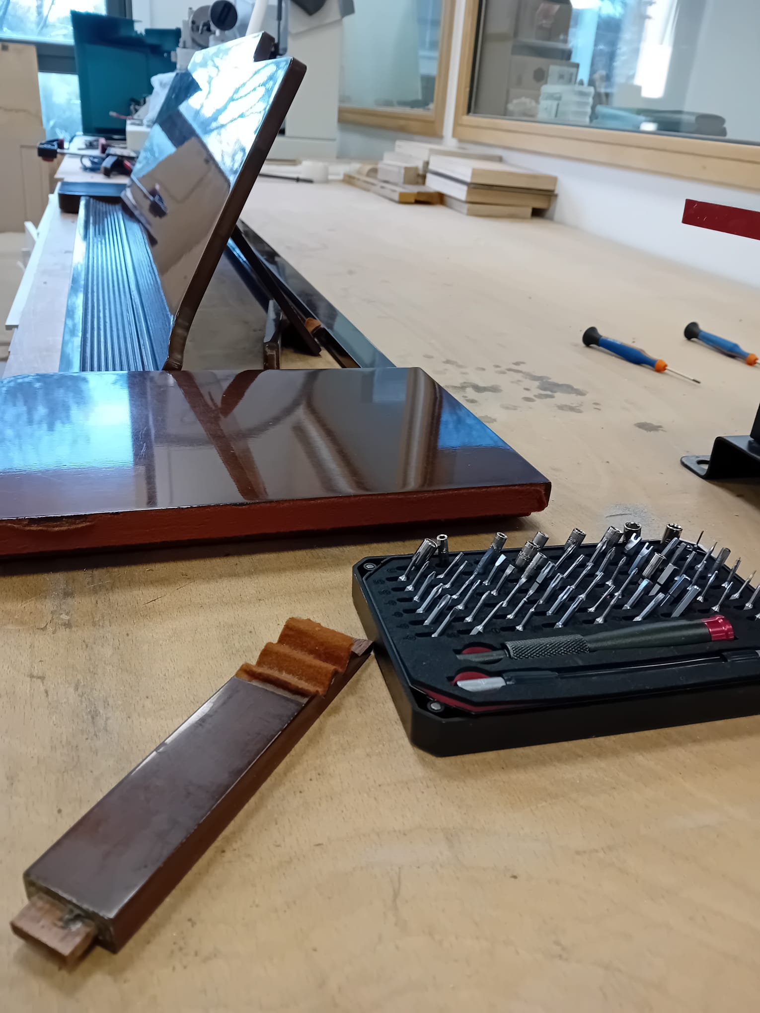 Le pupitre et la béquille de couvercle ont été démontés du piano et amenés au Fablab afin d'y effectuer la réparation. Le reste du piano a été directement réparé à la MVE.
