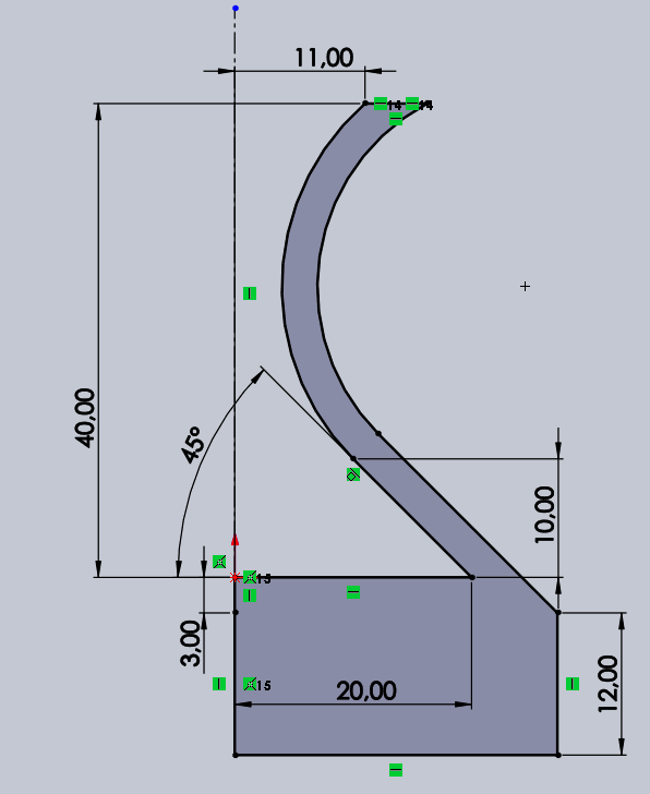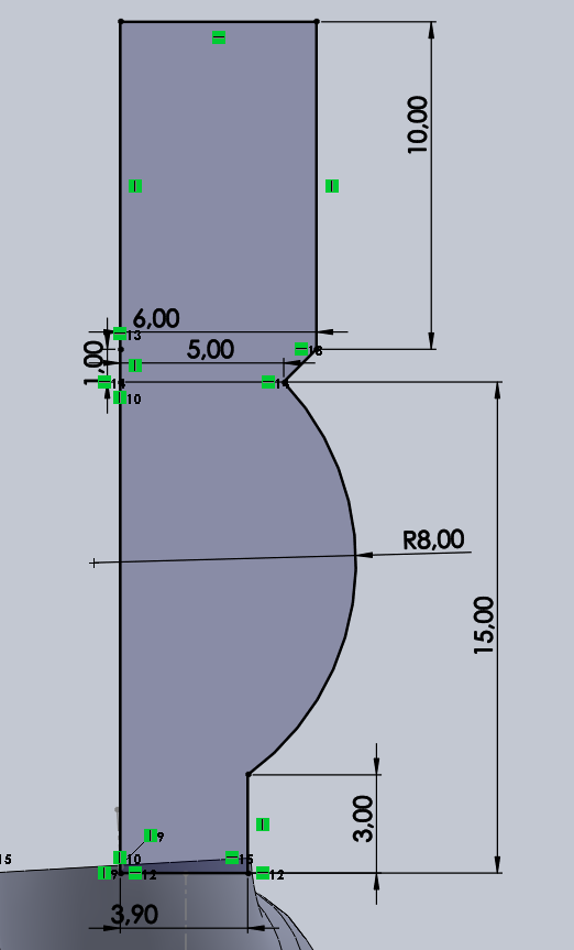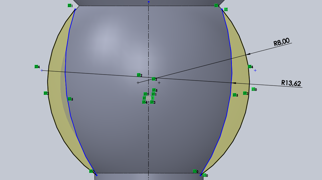 Pour la conception du vase sous SolidWorks, une révolution sur 360° a était réaliser à partir de cette esquisse :