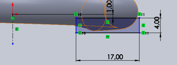 ainsi qu'une extrusion pour les yeux (sur la quel nous avons réaliser des congés de 1mm) :