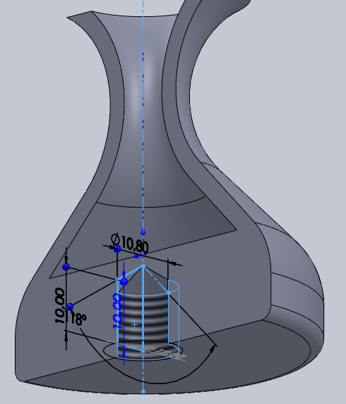 Un trou taraudé au centre de la base du vase à ensuite était réaliser, avec les paramètres suivant : *