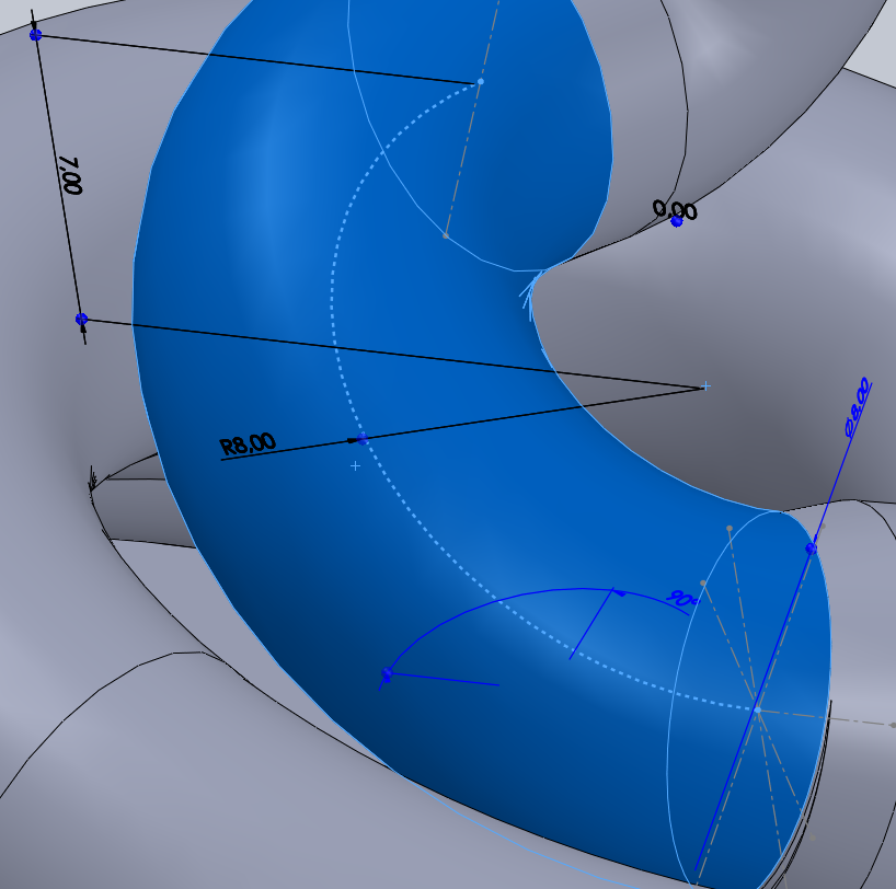 Pour la tête du serpent et la vis, un dernier Balayage a été réaliser avec l'esquisse suivante :