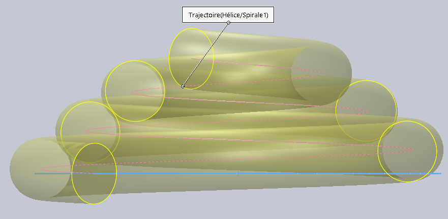Pour la réalisation du support, nous avons commencer par réaliser un Balayage de type profil circulaire, suivant une courbe Hélice/Spiral1, avec un diamètre de 9mm comme suivant :