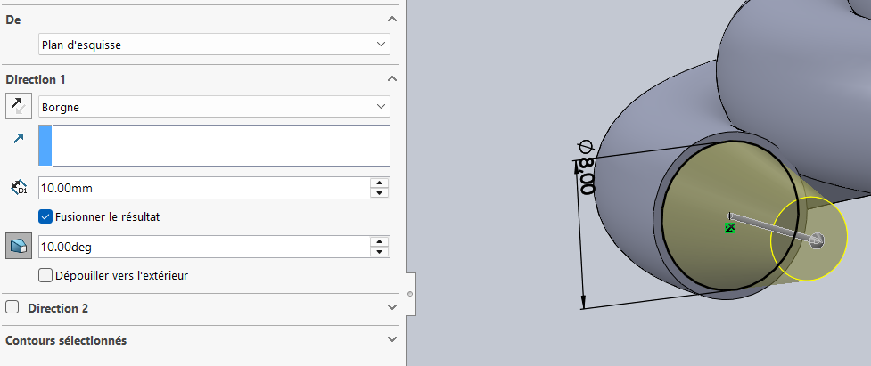 La condition de fin réalisé est de type "jusqu'à la sélection" la face supérieur ayant été sélectionner.
