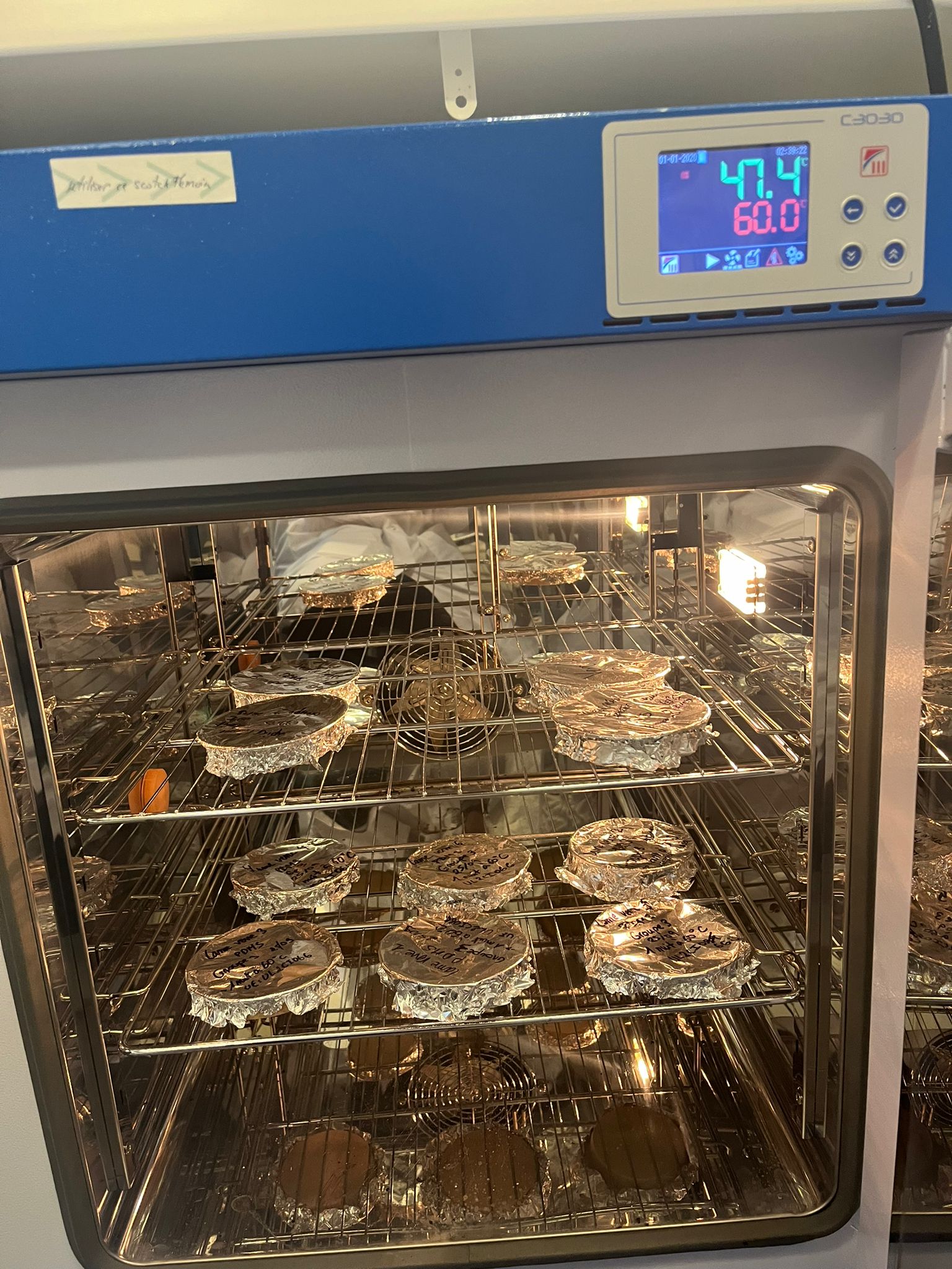 Moules PDMS : 6 lames moulées. Que nous mettons dans une étuve réglée à 60°C pendant une nuit afin de solidifier le PDMS.