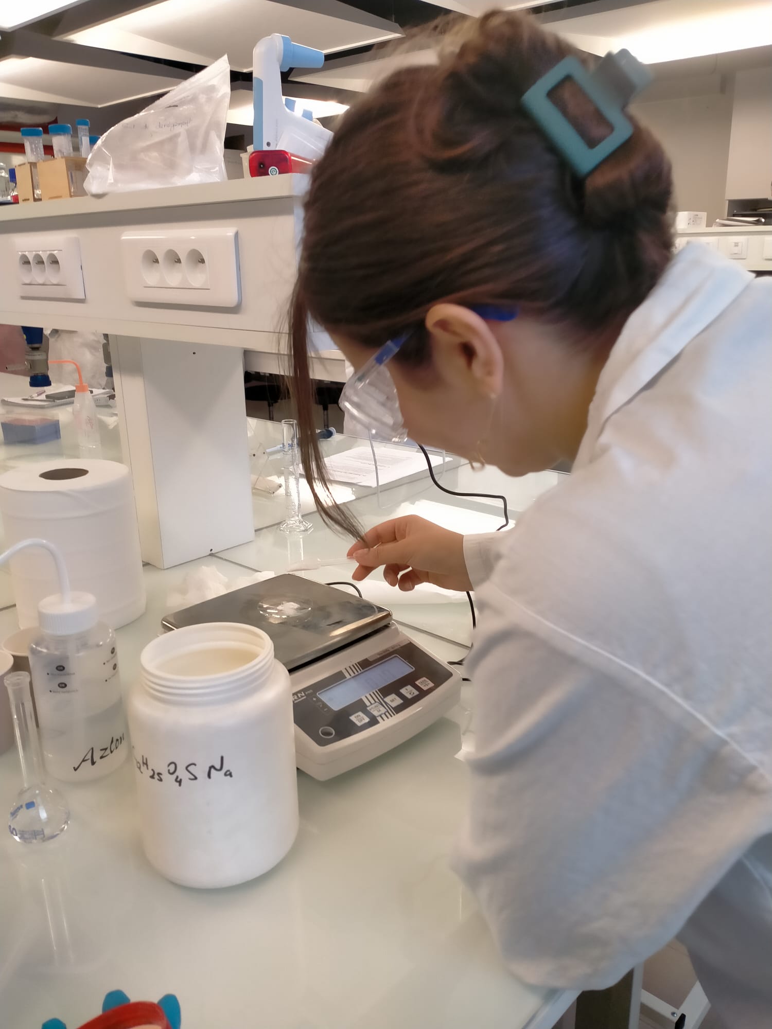 - SDS (LSS) : peser 0,72 g de SDS solide dans une coupelle → verser dans une fiole jaugée de 50 mL avec un entonnoir → ajout d'eau distillée (~2/3 du volume), homogénéisation, compléter au trait de jauge → SDS mère 50 mM. Étiquetage.