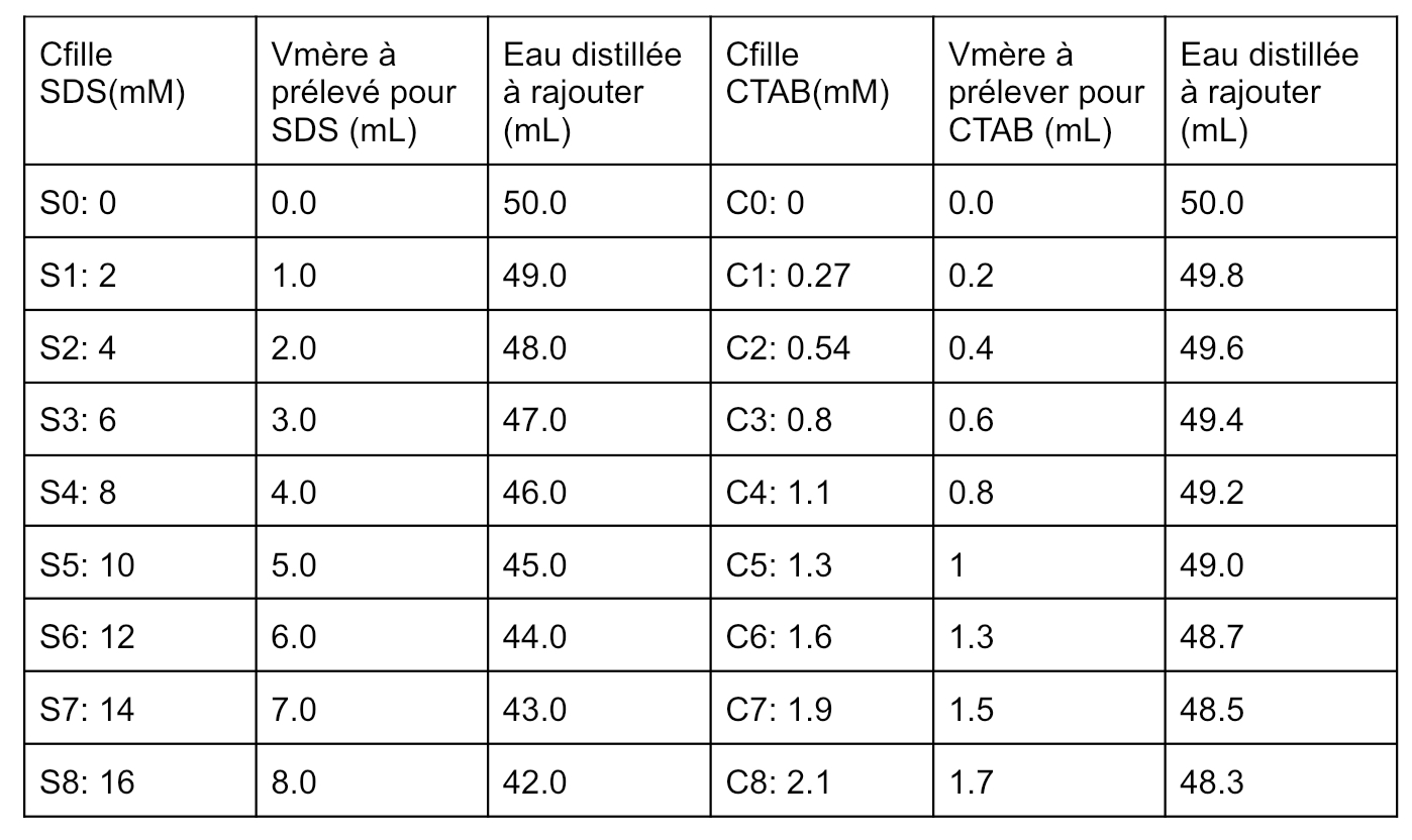 - Nous avons réaliser cette manipulation pour toute nos solutions de CTAB ainsi que celle du SDS.