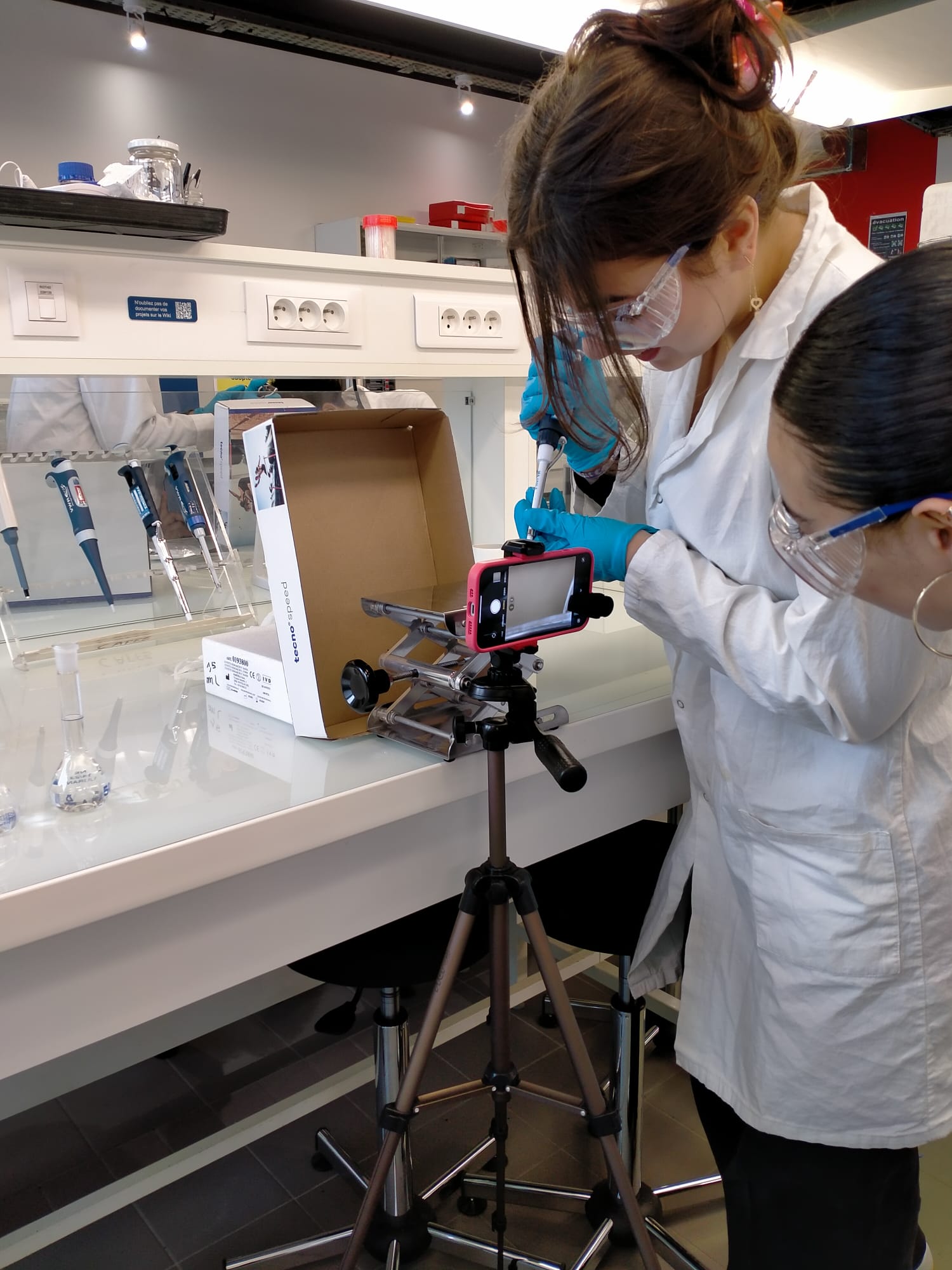 Pour préparer l'intsallation ce munir d'un élévateur où nous allons poser notre lame de PDMS. Se munir d'un trépier afin d'éléver le téléphone a la même hauteur que la lame de PDMS et sur le telephone installer une lentille afin de voir de plus près avec une belle précision.