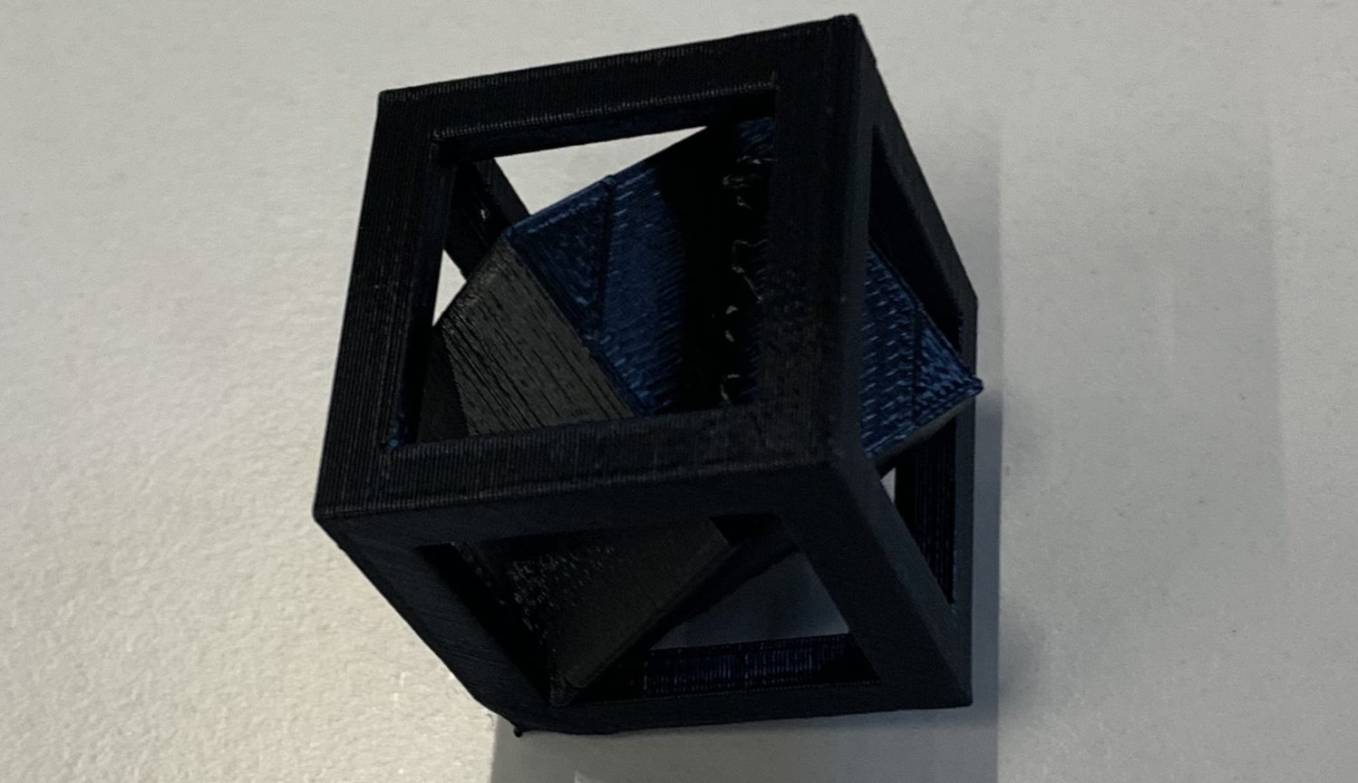 Le défi : Créer un cube (le prisonnier) enfermé à l'intérieur d'une cage, sans aucun assemblage après l'impression. Le cube intérieur possède des dimensions supérieures aux ouvertures de la cage, le rendant prisonnier à vie de sa structure.