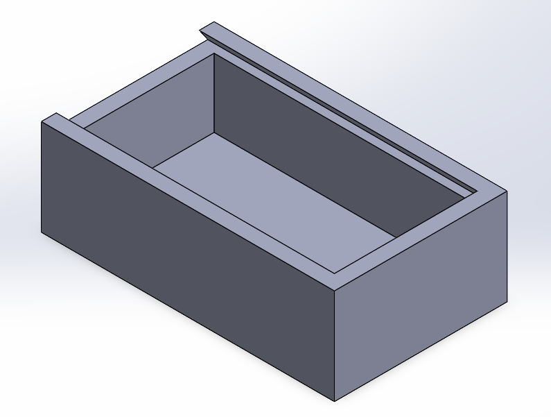 Pour ce faire nous avons effectué un bossage d'une base en rectangle puis deux enlèvement de matière pour créer dans un premier temps la cavité de la boite et ensuite l'espace pour y faire glisser le couvercle.