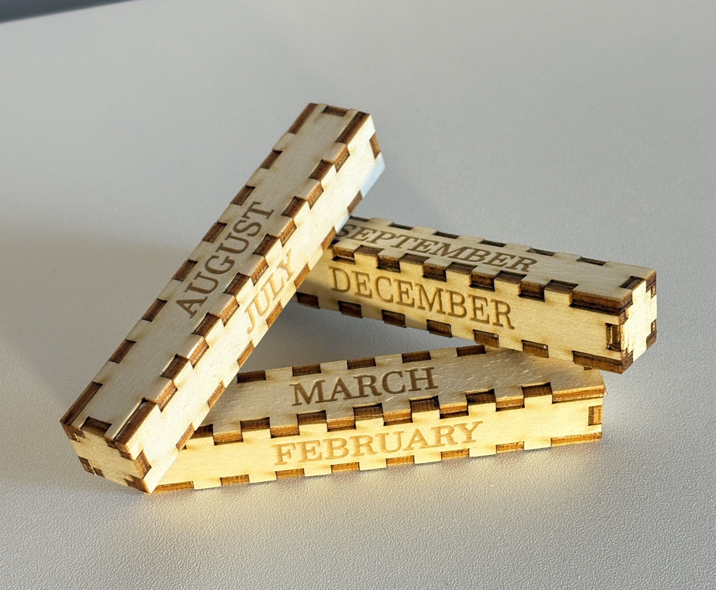 - Les mois : 3 pavés de dimension 10x1.6x1.6cm, avec une tolérance de 0.12mm.
