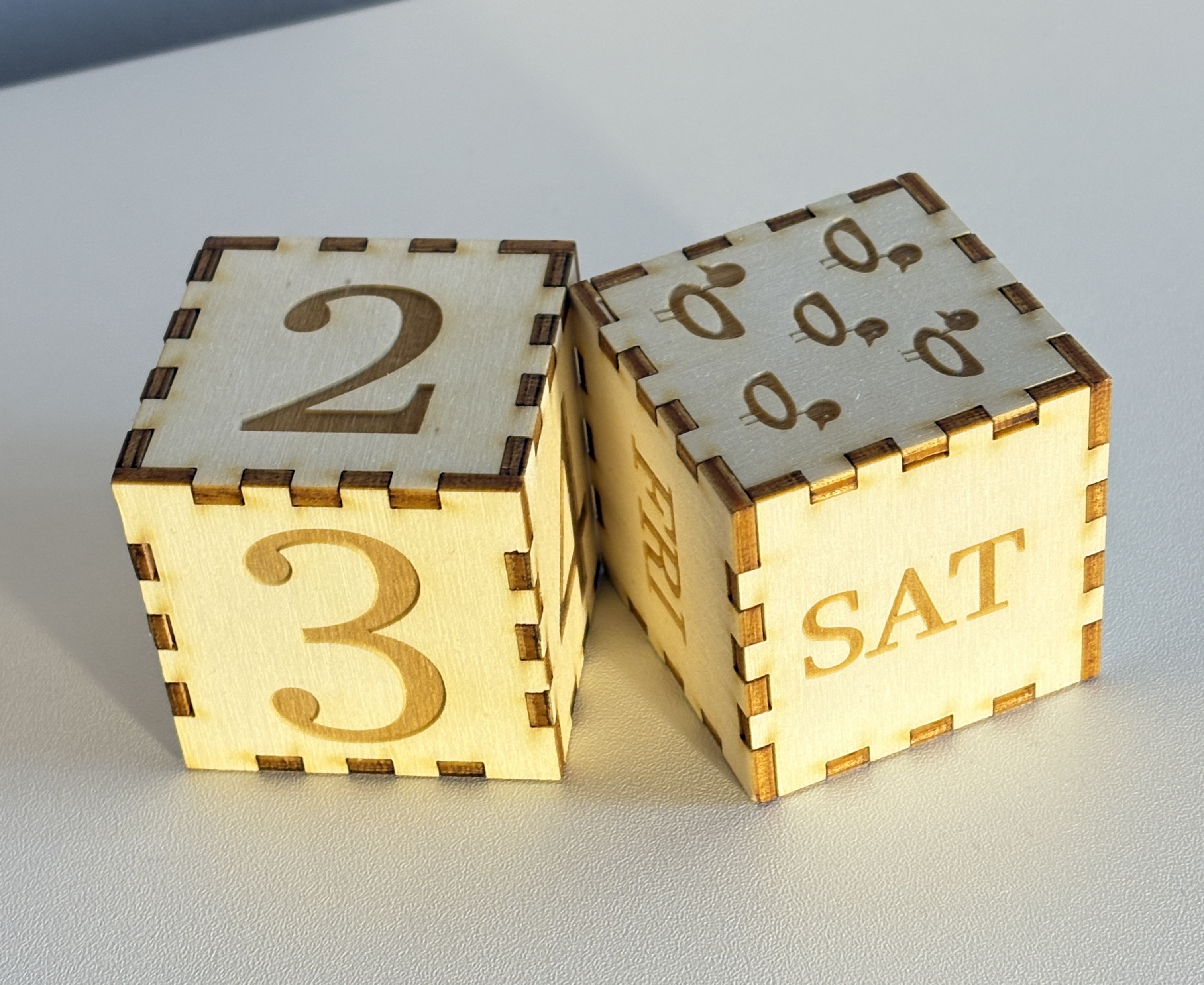 - Les jours et les jours de la semaine : 4 cubes de dimension 5x5x5cm, avec une tolérance de 0.11mm.
