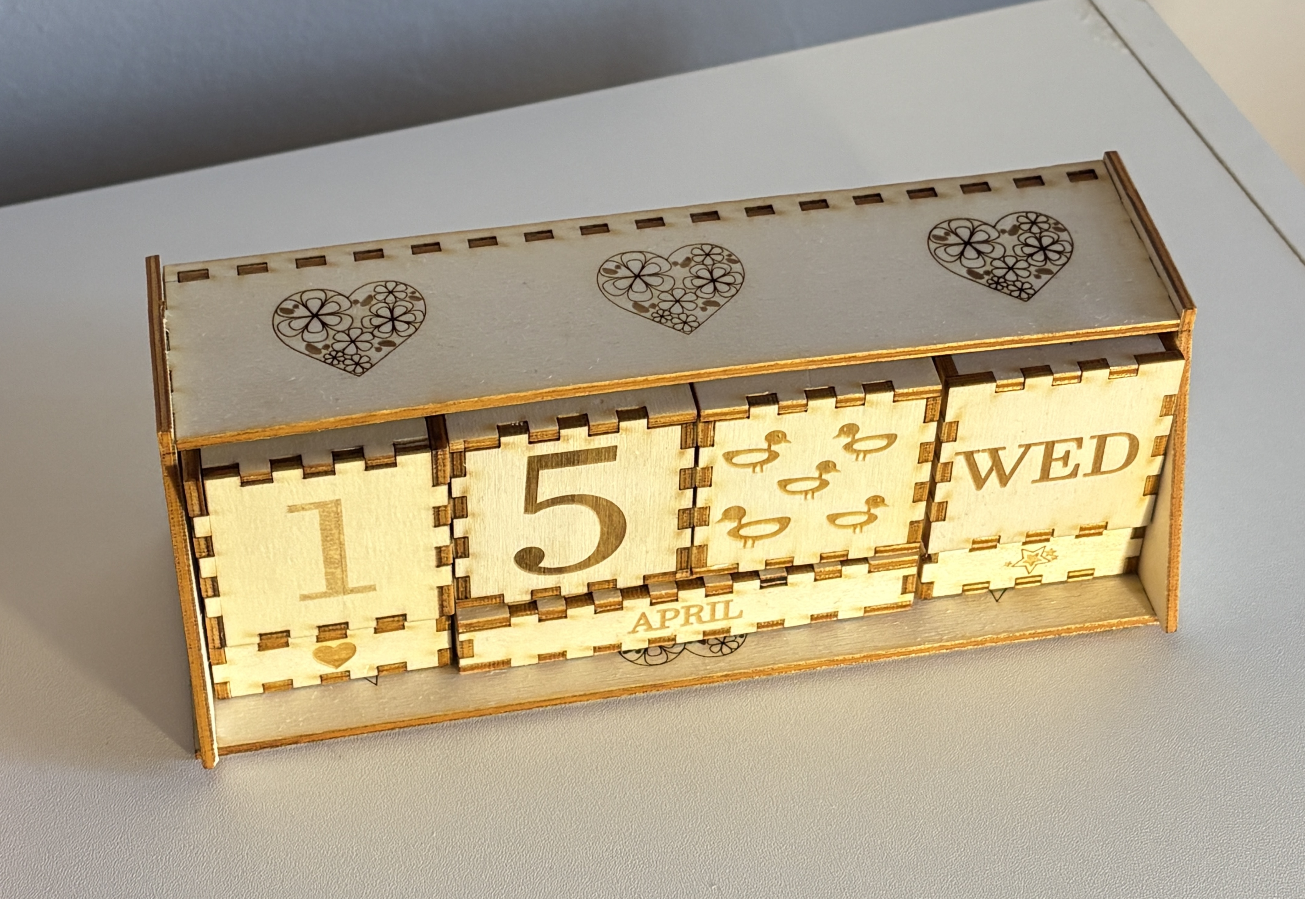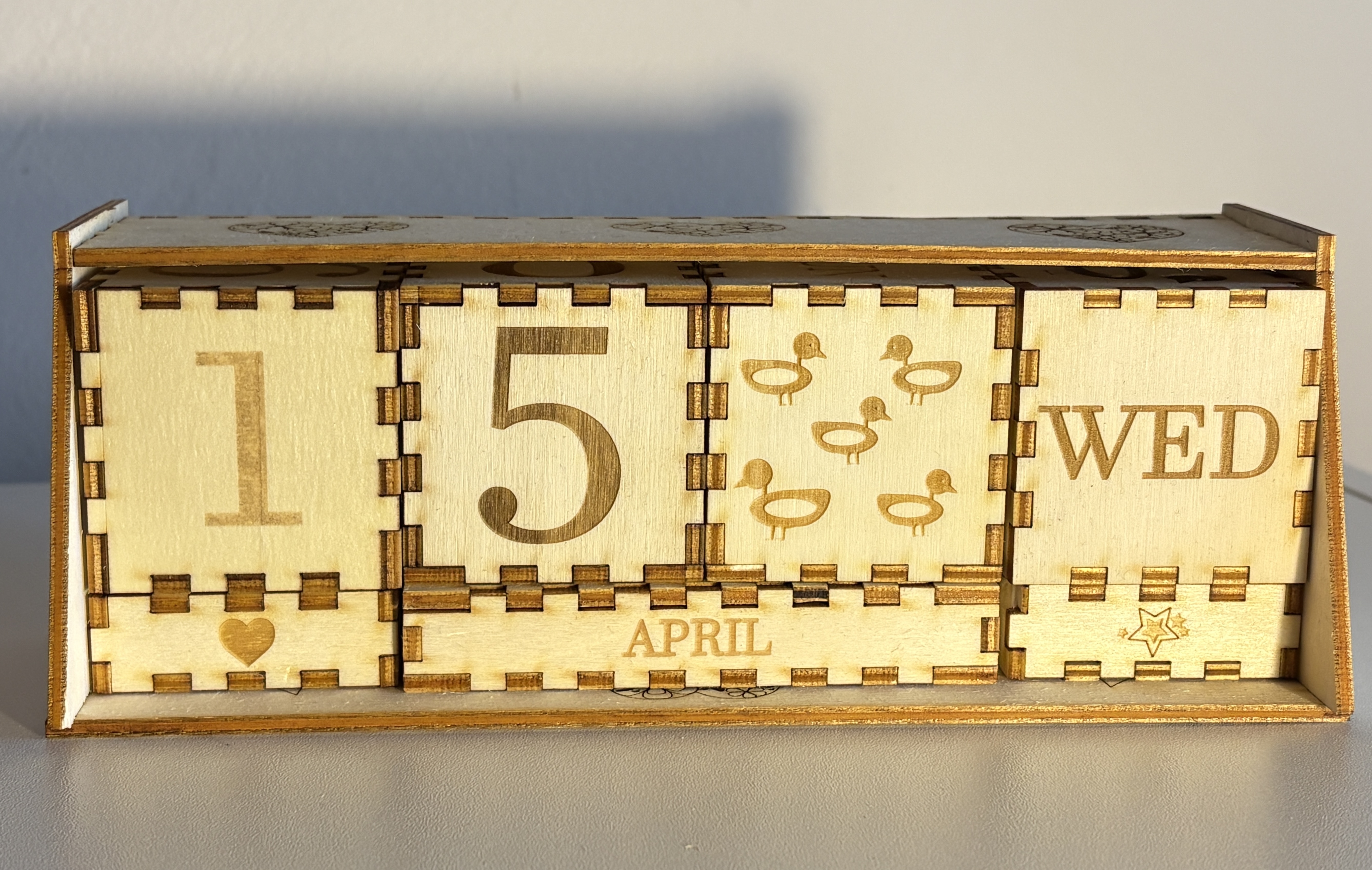 Pour la réalisation de ce projet, nous avons utilisé du contreplaqué peuplier de 3 mm. Ce matériau a été choisi pour sa légèreté, facilitant ainsi la manipulation quotidienne du calendrier.