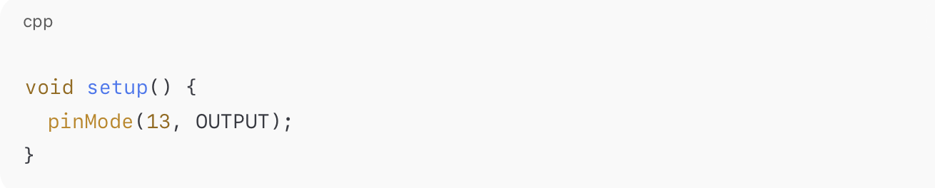 Dans la fonction setup(), la broche 13 est configurée en sortie :