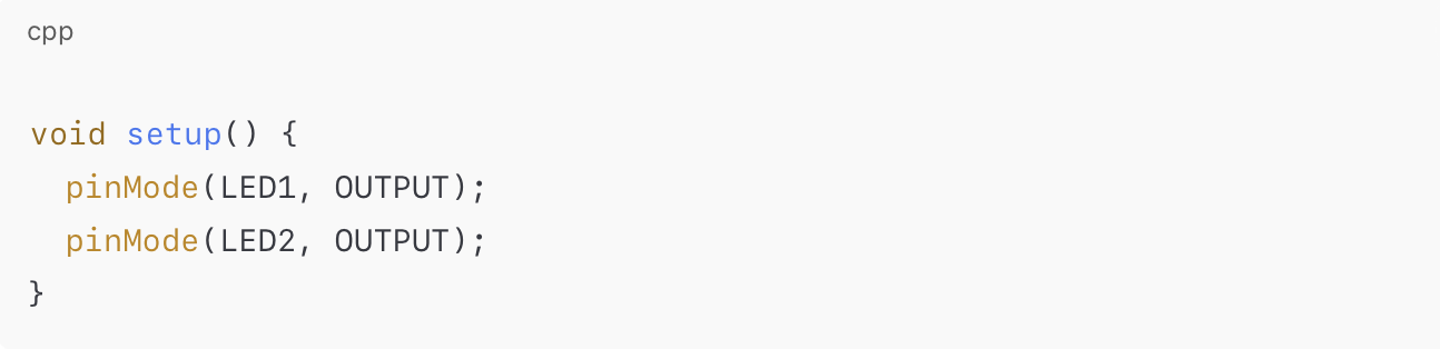 Dans la fonction setup(), les deux broches sont configurées en sortie :