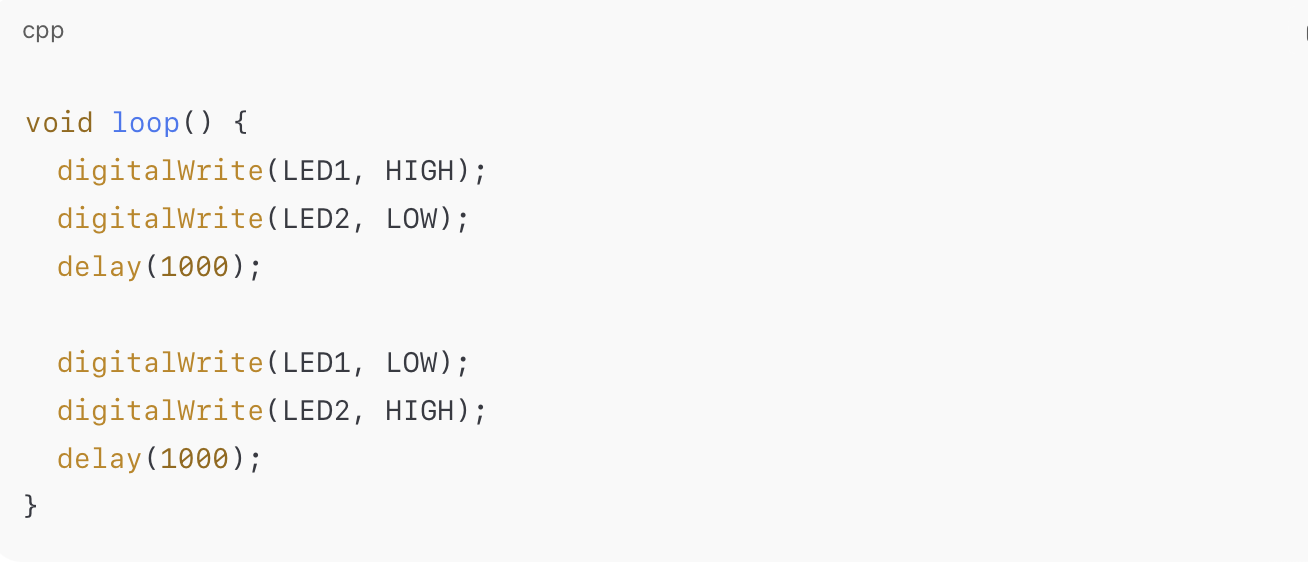 Dans la boucle principale, les LEDs s’allument alternativement :
