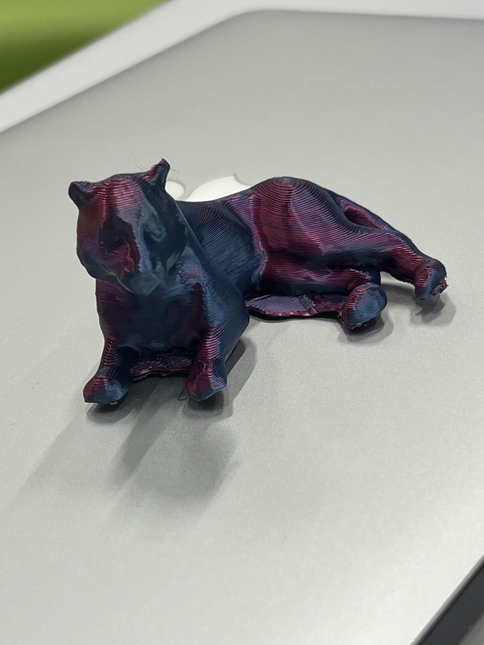 Le résultat n'est pas mauvais, mais il aurait fallu accorder plus de temps à l'impression. En augmentant la vitesse d'extrusion, la qualité de finition du tigre n'a pas été optimale