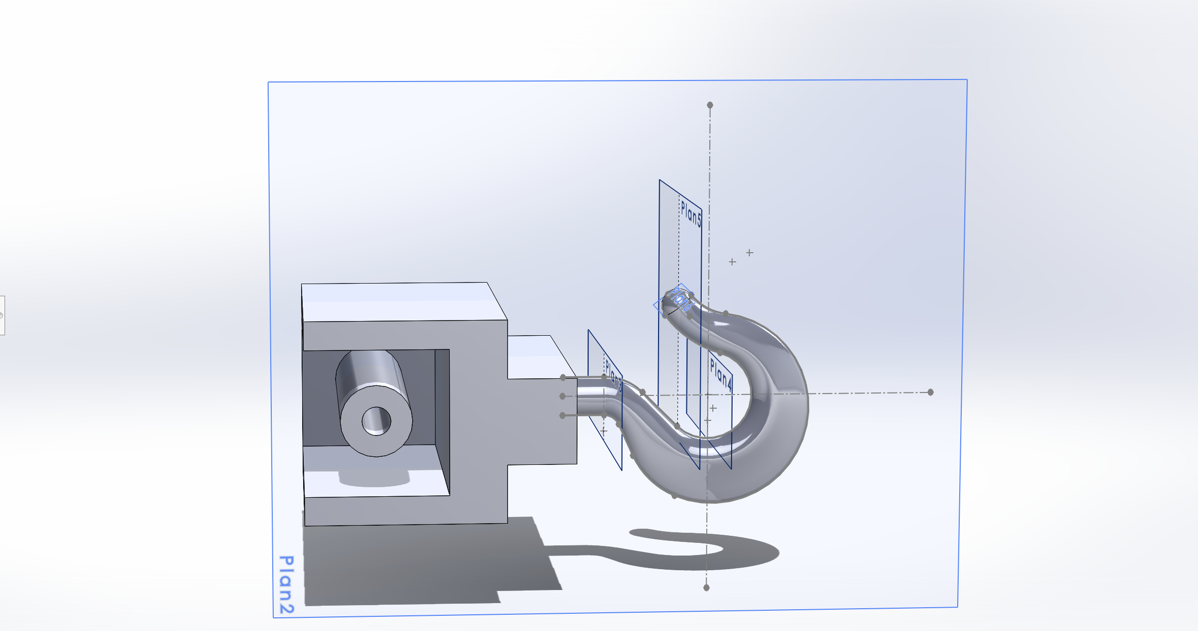 Notre dernier ajout est un crochet en bout du connecteur afin de permettre à la fois l'attache à un objet et l'attache à un support fixe. Nous avons suivi ce remarquable tutoriel et adapté à notre géométrie de base donnant le rendu présenté en dans l'image ci-dessous.
