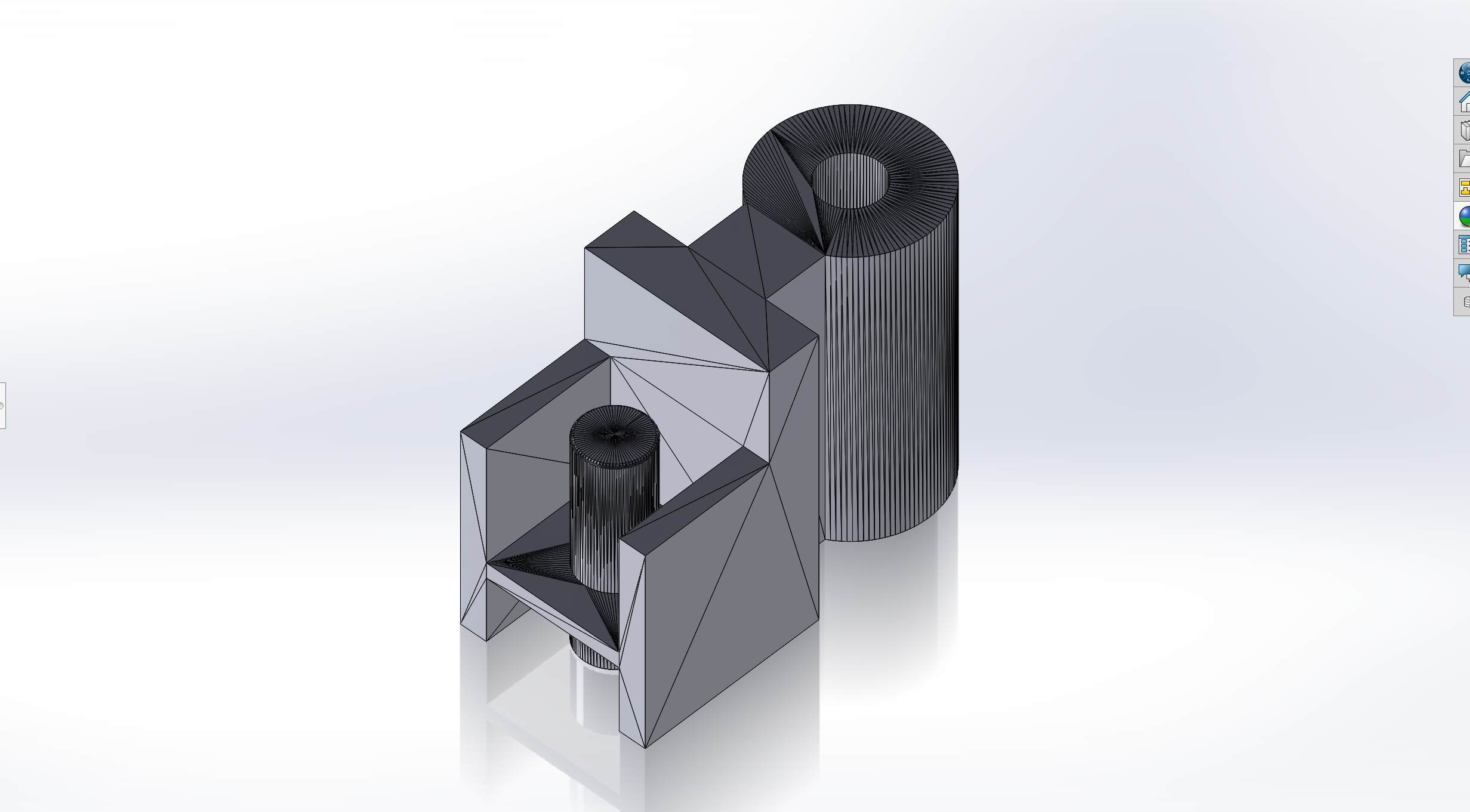 Néanmoins, cette conception n'est pas sans risque. Effectivement, même en supposant que toutes les mesures (choisies à "main levée" qui plus est) soient correctes, si l'objet est trop petit comme la première fois, les détails, notamment du col permettant de piéger l'embout mâle ne seront pas efficaces mais ce n'est pas à craindre car nous ferons en sorte que les pièces soient suffisamment grosses. Une autre de nos peurs est simplement que la finesse de l'embout mâle rende la pièce trop fragile et casse.