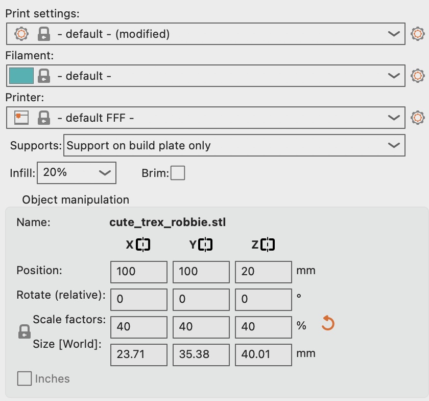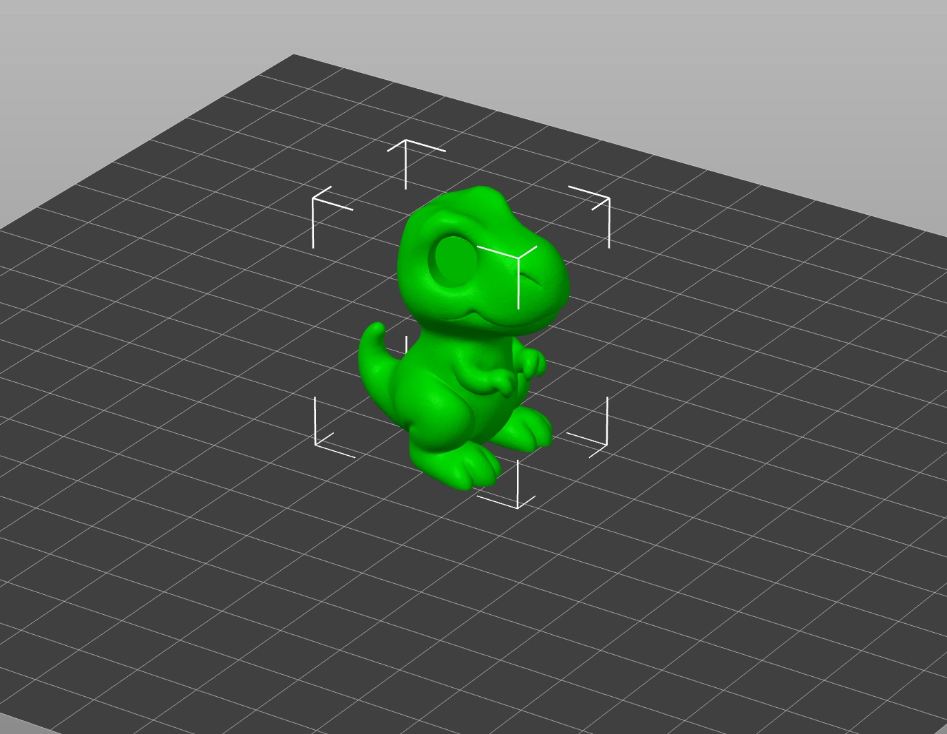 Le modèle de la figurine T-rex a été importé dans PrusaSlicer puis préparé pour l’impression.