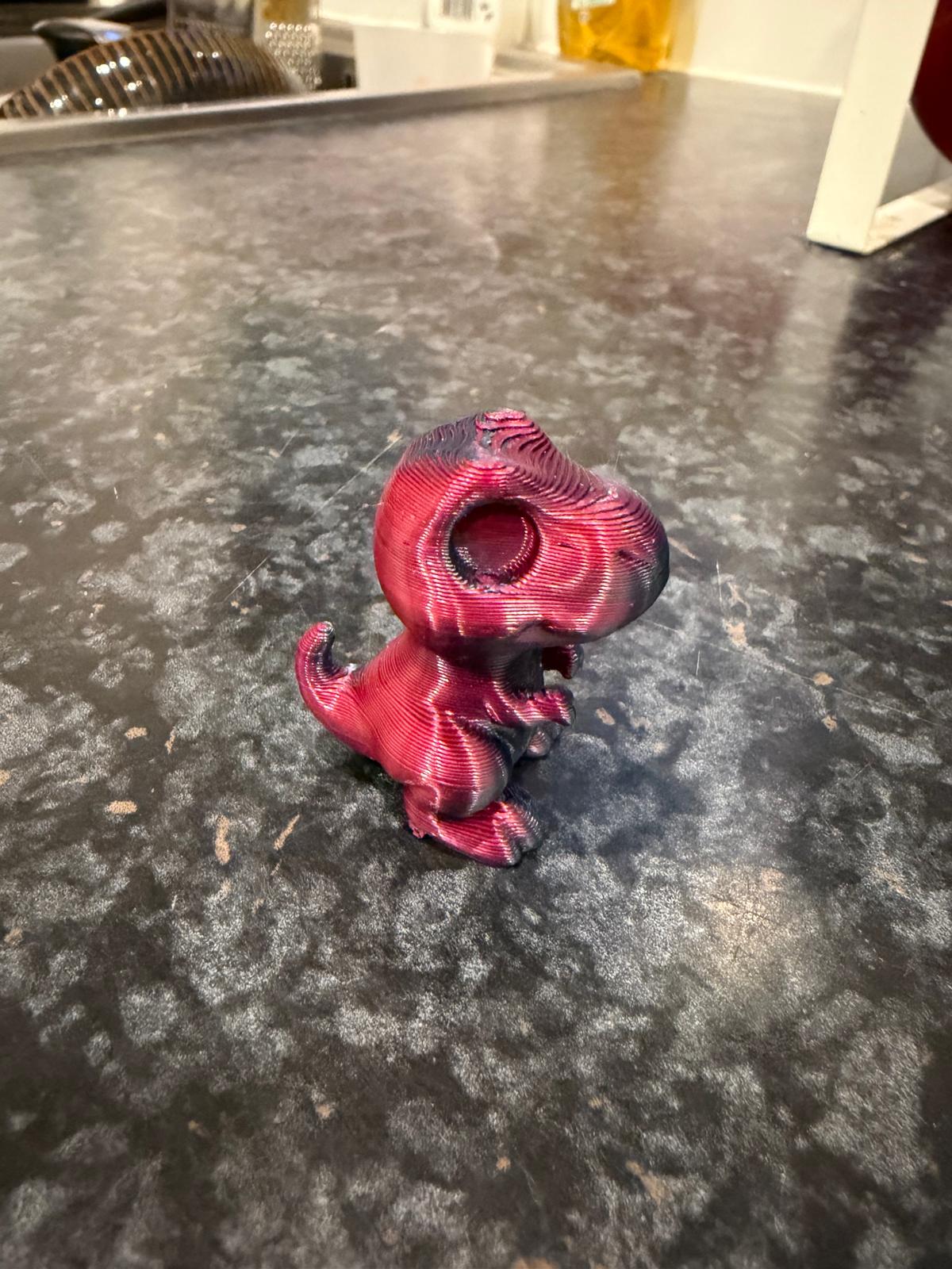 Contrairement à un objet industriel standardisé, j’ai choisi d’imprimer une figurine de T-rex, un modèle plus organique et complexe, afin d’observer le comportement de l’impression 3D sur des formes courbes, des détails fins et des porte-à-faux (bras, tête, queue).