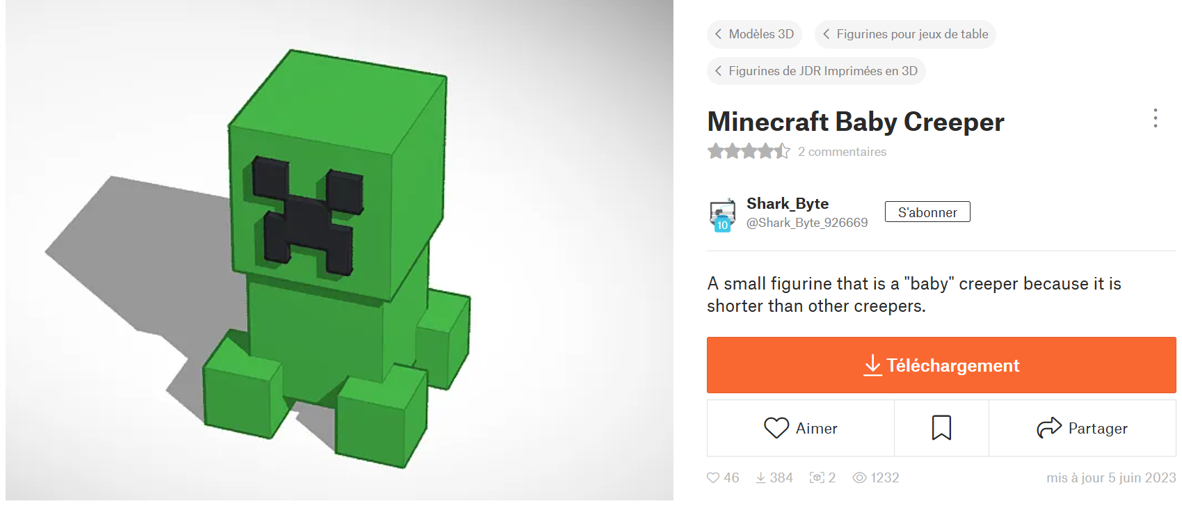 J'ai décidé de baser ma recherche sur des figurines, je suis tombé sur le modèle de Baby Creeper