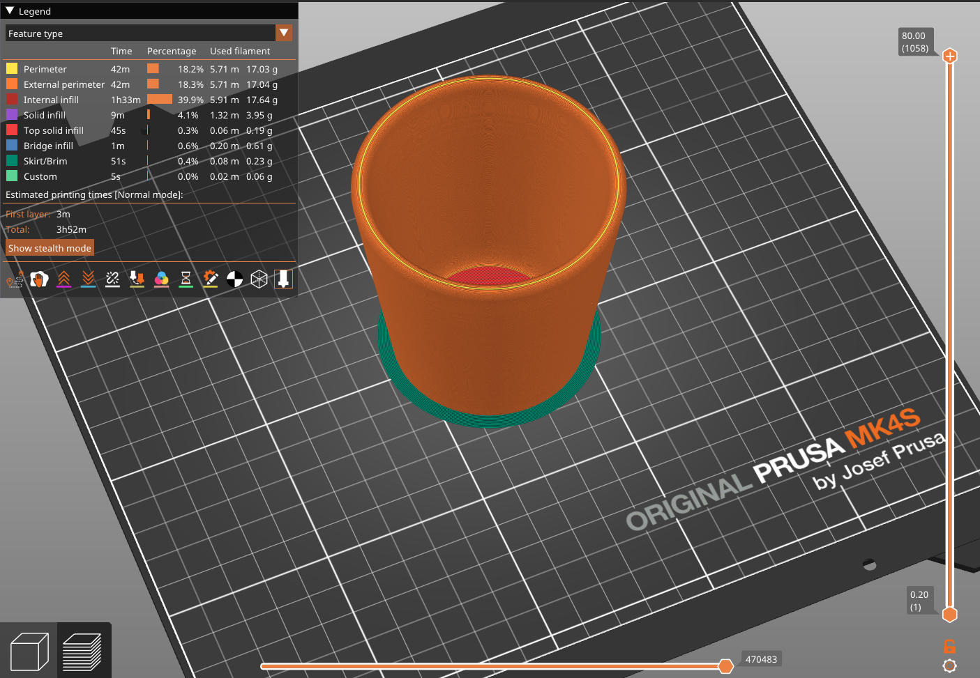 L'impression sur la Prusa MK4S a donné un résultat très propre. Les couches sont bien fusionnées, assurant une étanchéité parfaite lors du test de remplissage.
