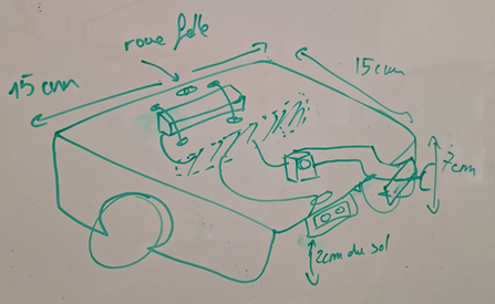 Puisqu’un dessin vaut mieux que 1000 mots, voici la première représentation de notre robot :