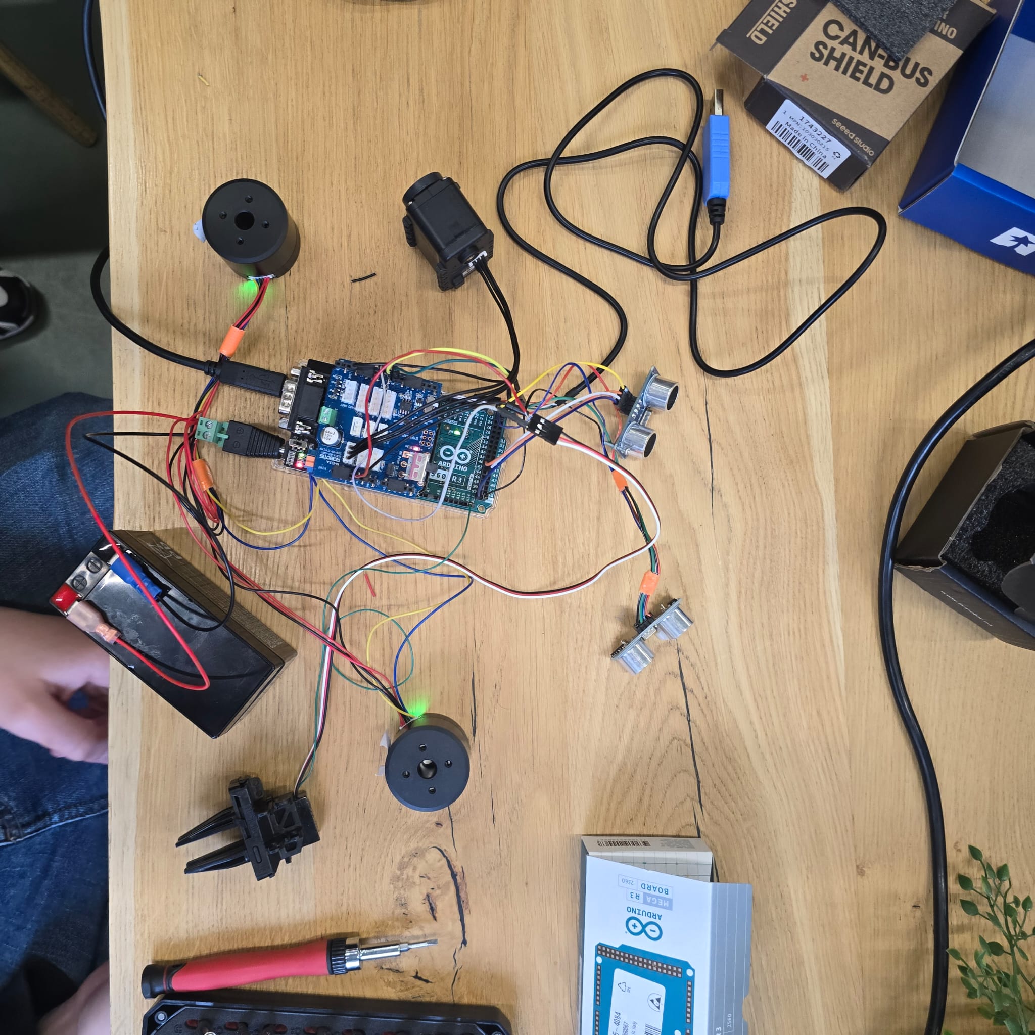 Vérifier l'intégrité du matériel : S'assurer qu'aucun composant (cartes Arduino, shields, moteurs, capteurs, pince) n'est défectueux.