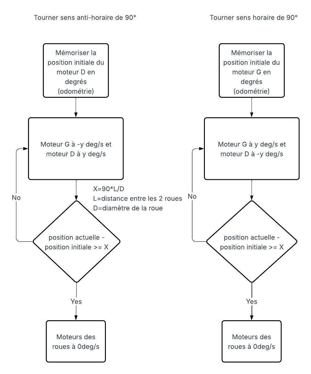 L'objectif était de trouver comment on allait coder les moteurs avec les contraintes imposées. Pour ce faire, on a commencé par dessiner des schémas et écrire étape par étape les mouvements qu'on voulait faire. Ensuite, on a réalisé un organigramme pour organiser nos idées et faciliter le codage ultérieur, qu'on a presque terminé.