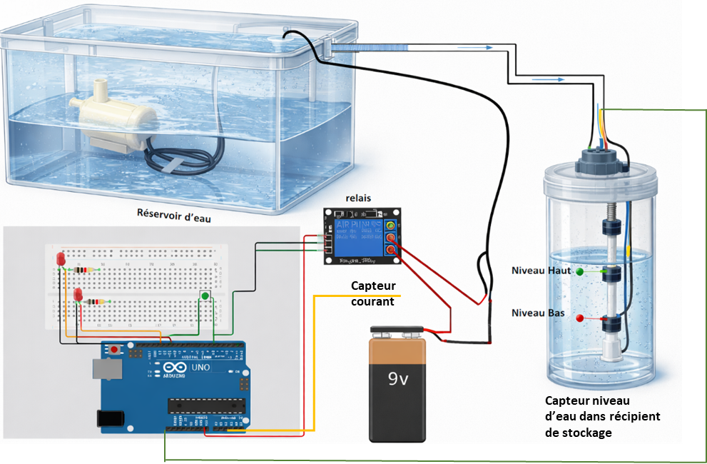Création d’un dispositif autonome de gestion de la recharge en eau d’un réservoir à base arduino.