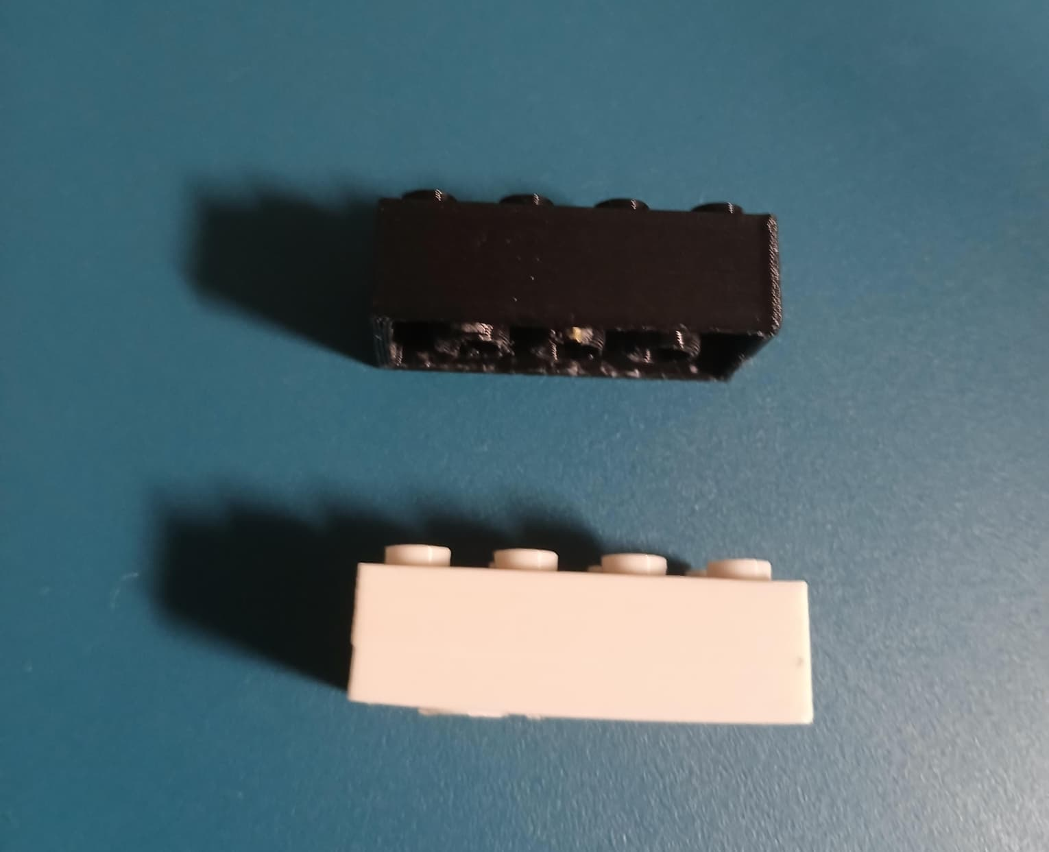 Les tests d’assemblage montrent que l’emboîtement est possible, mais qu’il n’est ni parfaitement aligné ni aussi précis que celui entre deux briques LEGO officielles.