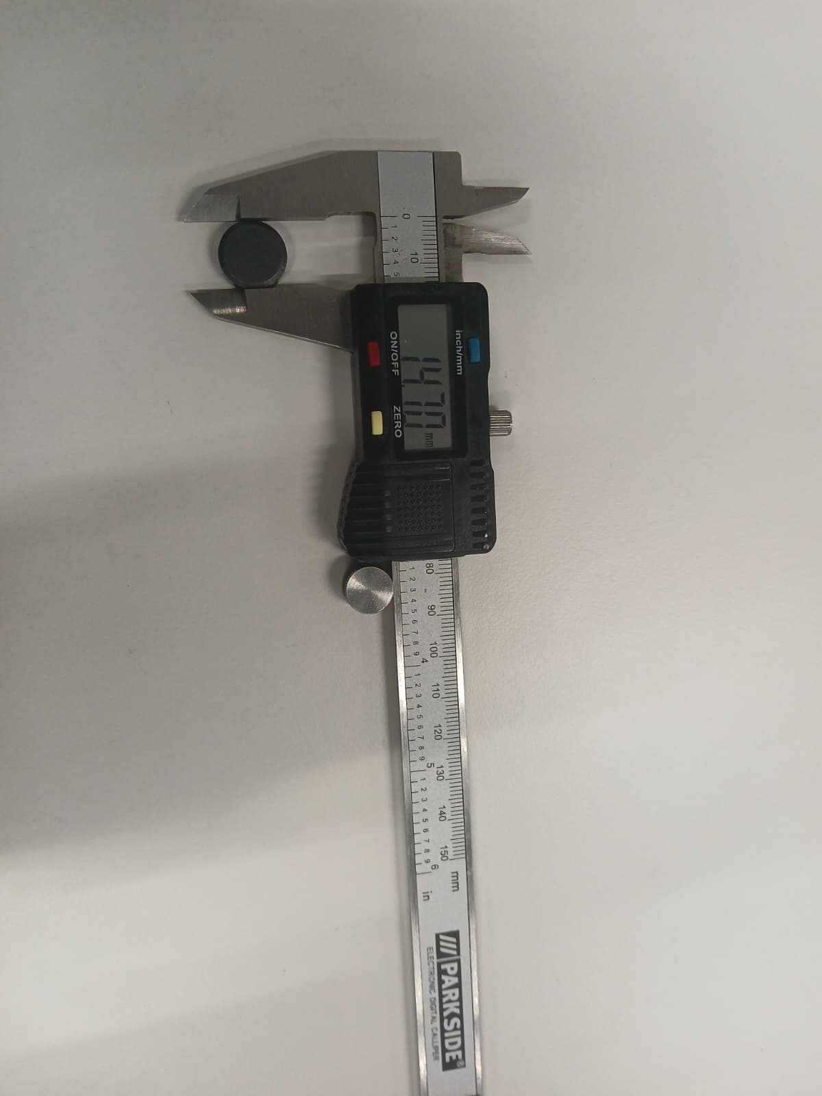 Avant la modélisation, j’ai mesuré les dimensions de l’aimant à l’aide d’un pied à coulisse numérique afin de garantir un ajustement correct dans le modèle 3D de l'espace où je vais intégrer l'aimant.