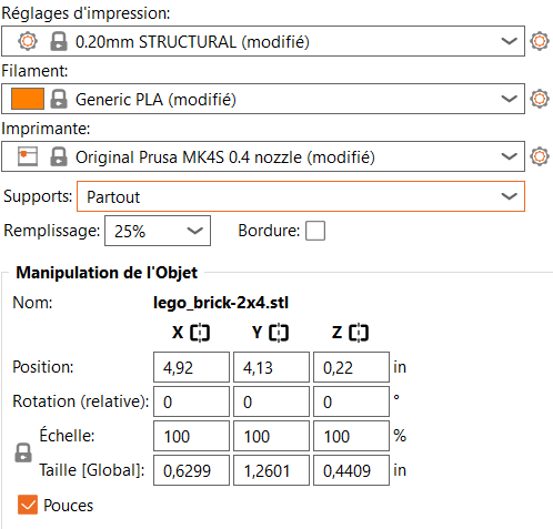 Exercice : Découverte de l’impression 3D à partir d’un modèle existant – Brique LEGO 2×4