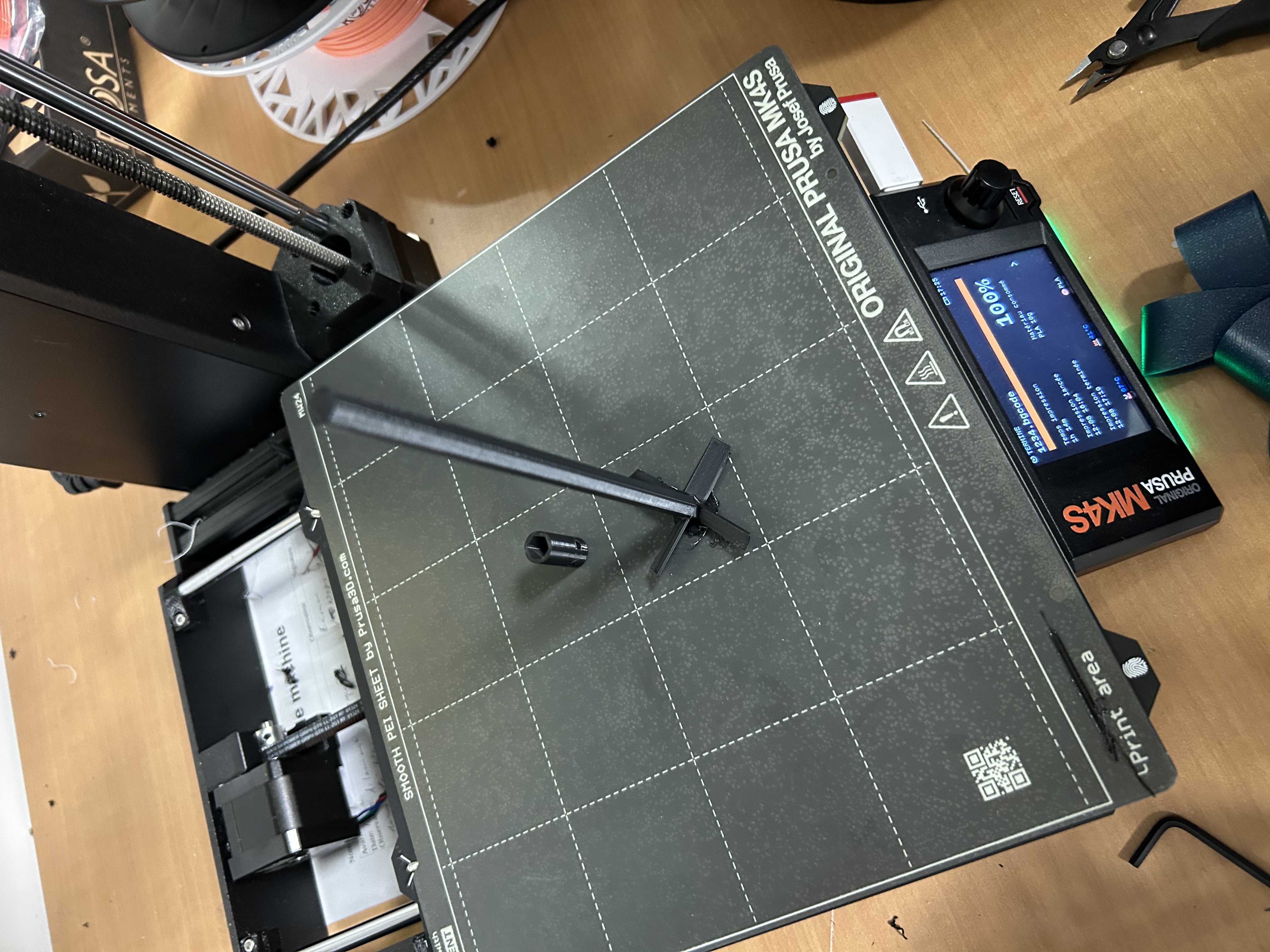 Lors de cette séance au FabLab, notre objectif était d’imprimer la palme d’agitation ainsi que la pièce destinée à assurer la liaison avec le moteur. L’impression a débuté normalement, mais après environ 1 h 30, un dysfonctionnement de l’imprimante est survenu. Ce problème a entraîné une déformation de la pièce en cours de fabrication. Nous devrons donc relancer une impression lors d’une prochaine séance.