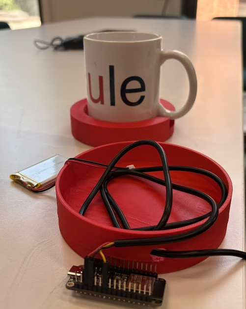 La Structure : Nous avons conçu une base imprimée en 3D. C’est un format fonctionnel qui nous permet de loger en toute sécurité l'électronique sous la tasse.