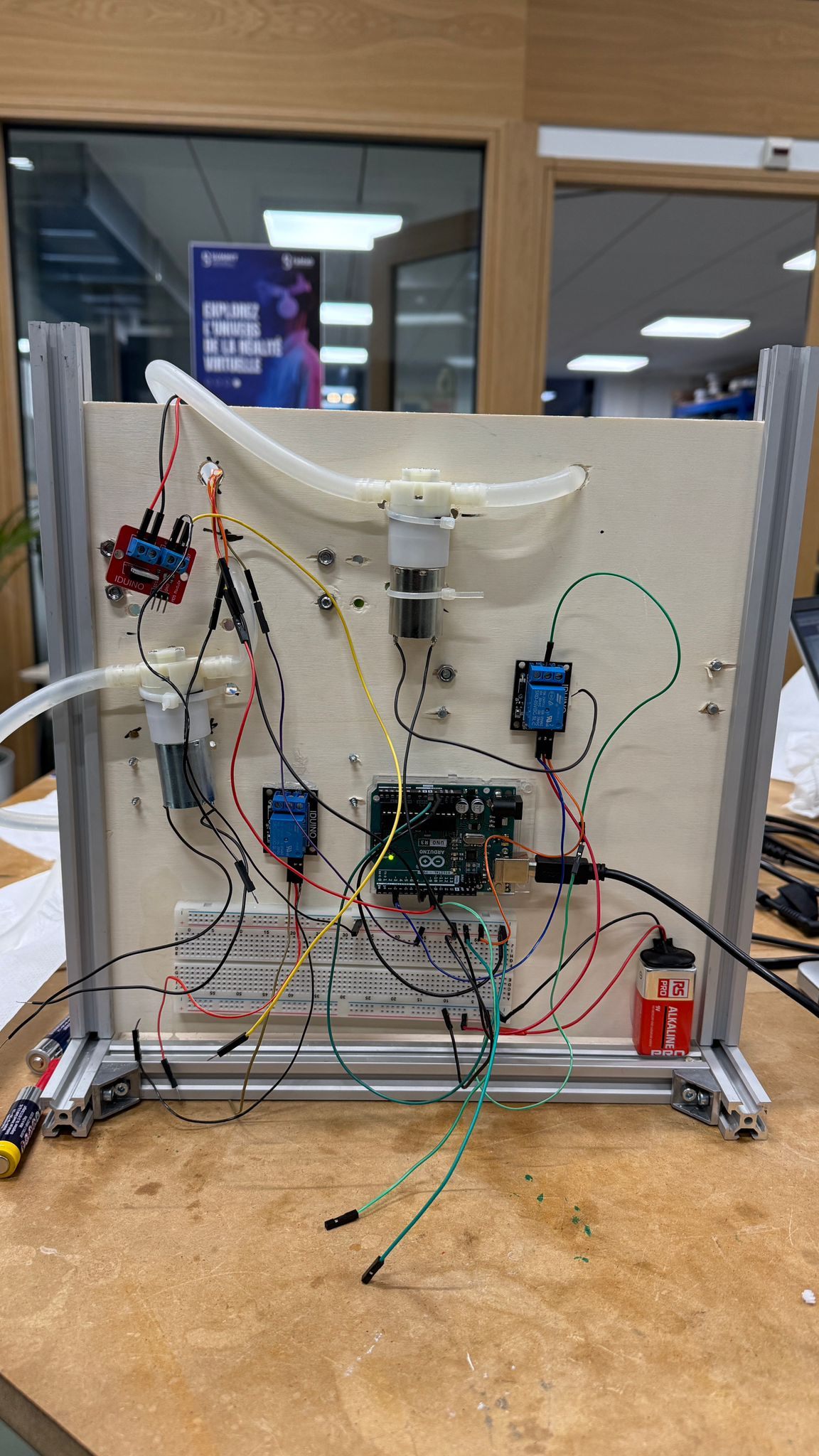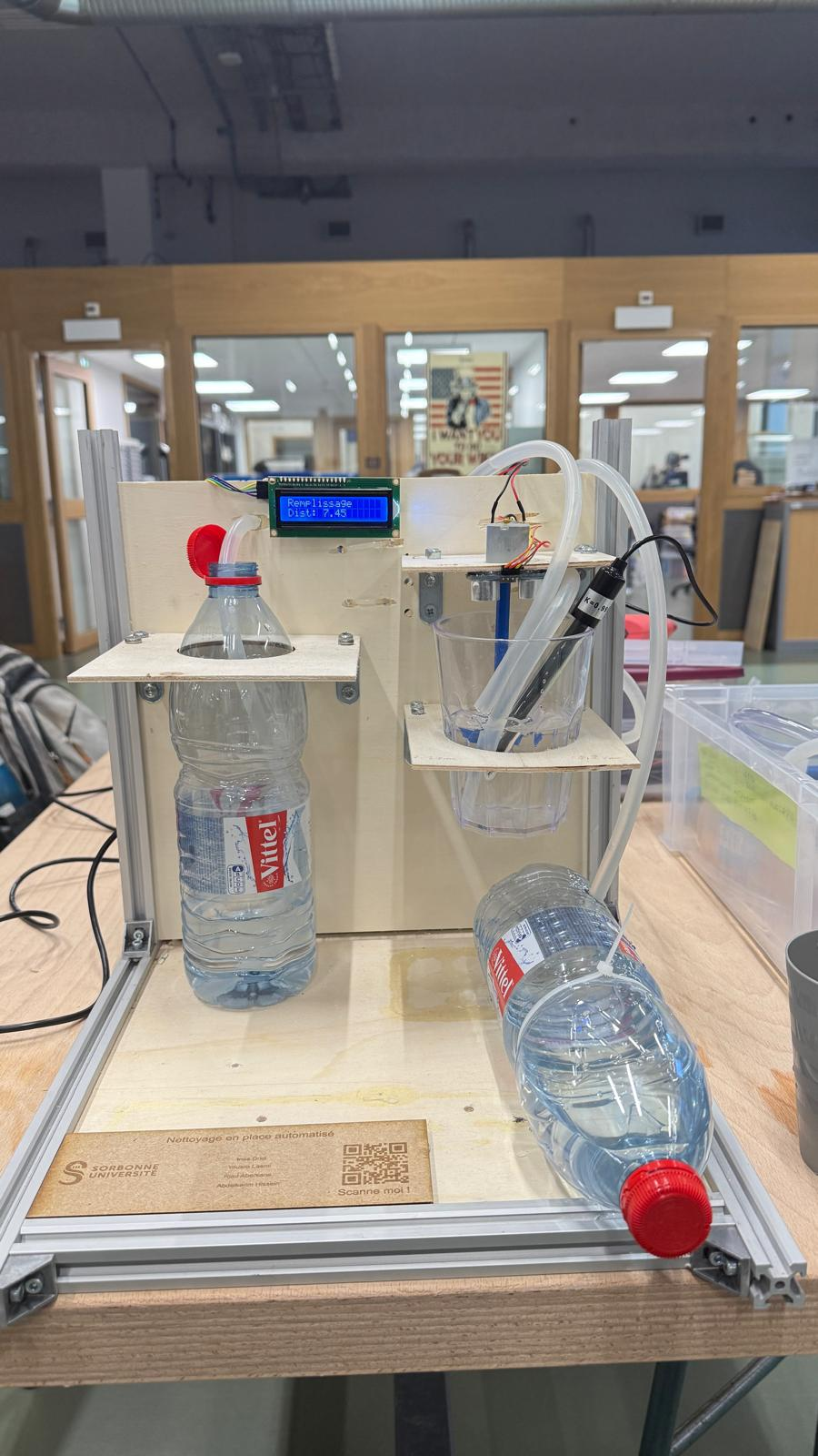 Le projet « NEP automatisé » consiste à concevoir un prototype de système de nettoyage en place à échelle réduite, piloté par une carte Arduino Uno. L’objectif est de reproduire, de manière pédagogique, automatisée et sécurisée, un procédé industriel de nettoyage des équipements de procédé (cuves, tuyauteries) en utilisant uniquement des produits non dangereux et alimentaires (eau, vinaigre blanc et liquide vaisselle). Dans un contexte industriel, la maîtrise des opérations de nettoyage est essentielle pour garantir la qualité des productions, limiter les contaminations croisées en réduisant les interventions manuelles et optimiser la consommation d’eau.