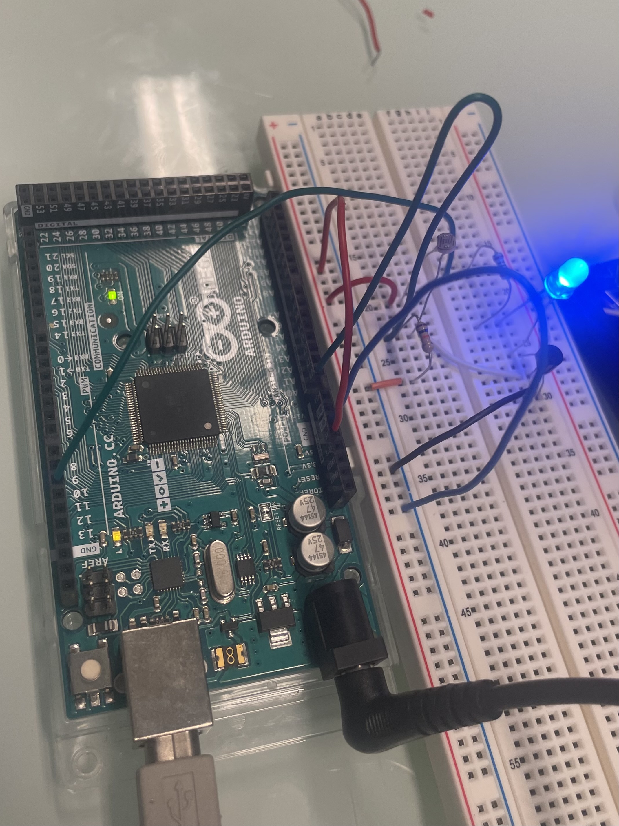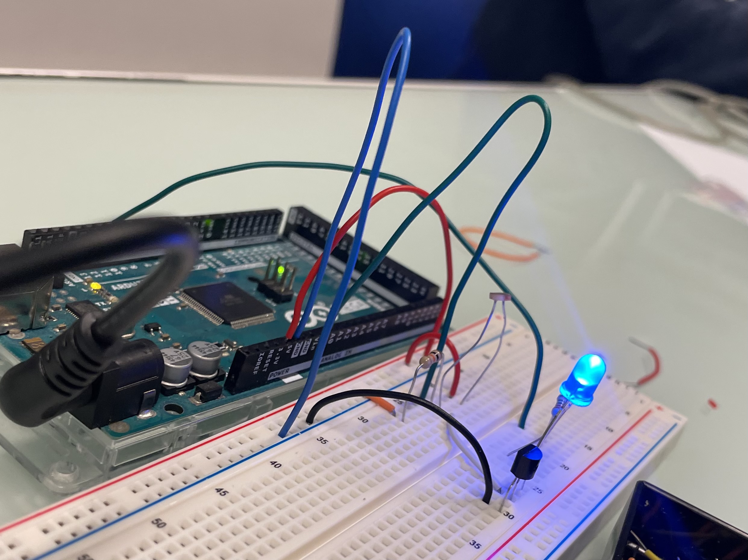 Montage électronique basé sur une carte ARDUINO, intégrant une photorésistance (LDR) et une photodiode. L’objectif est que la photodiode s’allume lorsque la main est placée sur la LDR.