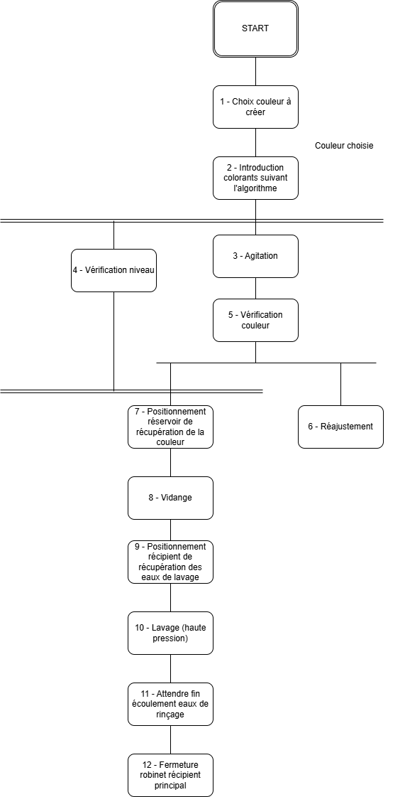 Dans le cadre du projet 823, nous sommes amenés à concevoir un système innovant qui illustre les principes de la digitalisation et de l’automatisation appliqués aux procédés. Pour cela, nous avons choisi de développer un dispositif capable de réaliser automatiquement la formulation de couleurs à partir de colorants alimentaires. Ce projet s’inspire des pratiques industrielles où la précision du dosage, la reproductibilité et le contrôle automatique des paramètres sont essentiels. Grâce à l’utilisation de composants électroniques, mécaniques et programmables, ce travail nous permettra d’aborder concrètement l’intégration d’un système automatisé complet : depuis la conception jusqu’aux tests, en passant par la fabrication au FabLab. Ce Wiki servira de support pour documenter l’évolution de notre prototype, étape par étape, afin de suivre la démarche de conception et les choix techniques réalisés tout au long du projet.
