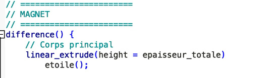 J’ai réalisé un programme sur OpenSCAD afin de modéliser une étoile destinée à devenir une magnette pour frigo.