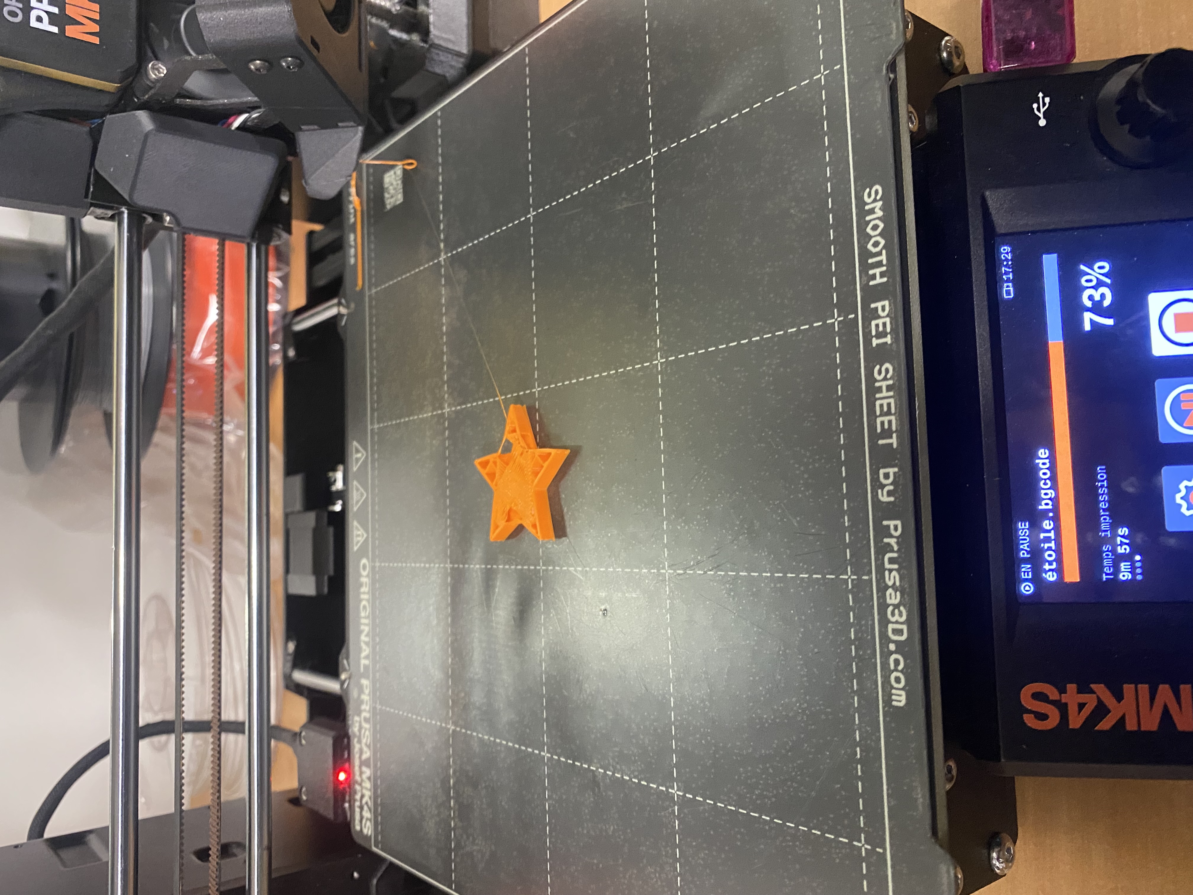 J’ai ensuite importé le fichier STL dans PrusaSlicer afin de régler les paramètres d’impression (taille, durée, supports, etc.) puis je l’ai exporté en G-code pour lancer l’impression.