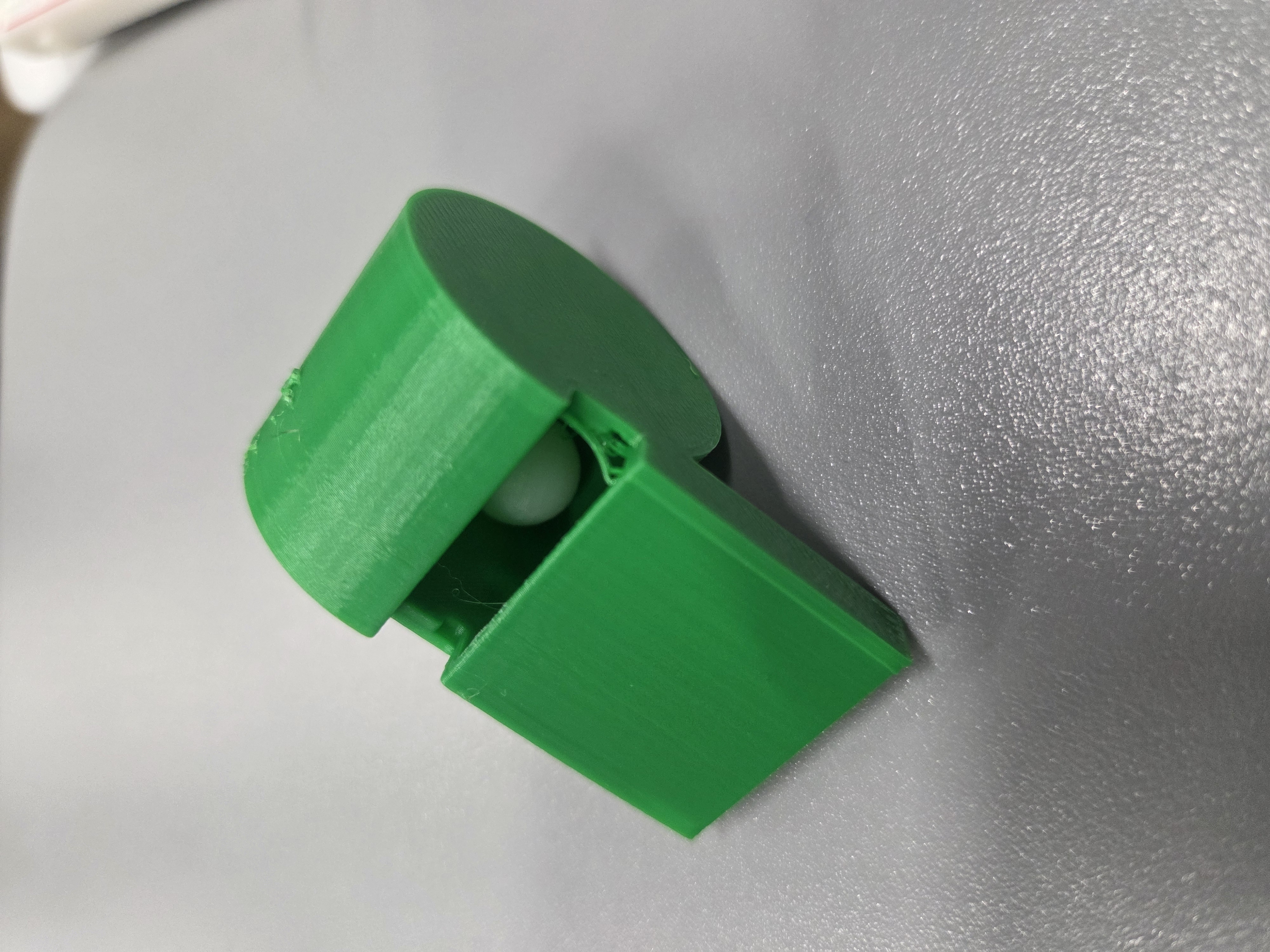J'ai tout de suite pensé à un sifflet renfermant une bille, car la bille est sensé être mobile à l'intérieur, et en plus le bruit du sifflet est le témoin idéal de la réussite de cette impression 3D... si la cavité n'est pas assez grande, si la bille est trop volumineuse, si la fente est trop étroite, nous n'aurons probablement pas un sifflet fonctionnel.
