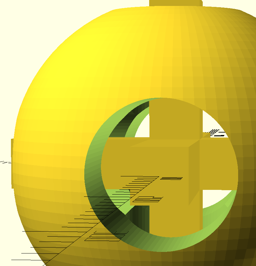 cylinder(h = 2*rayon_sphere + 2, r = rayon_trou, center = true);