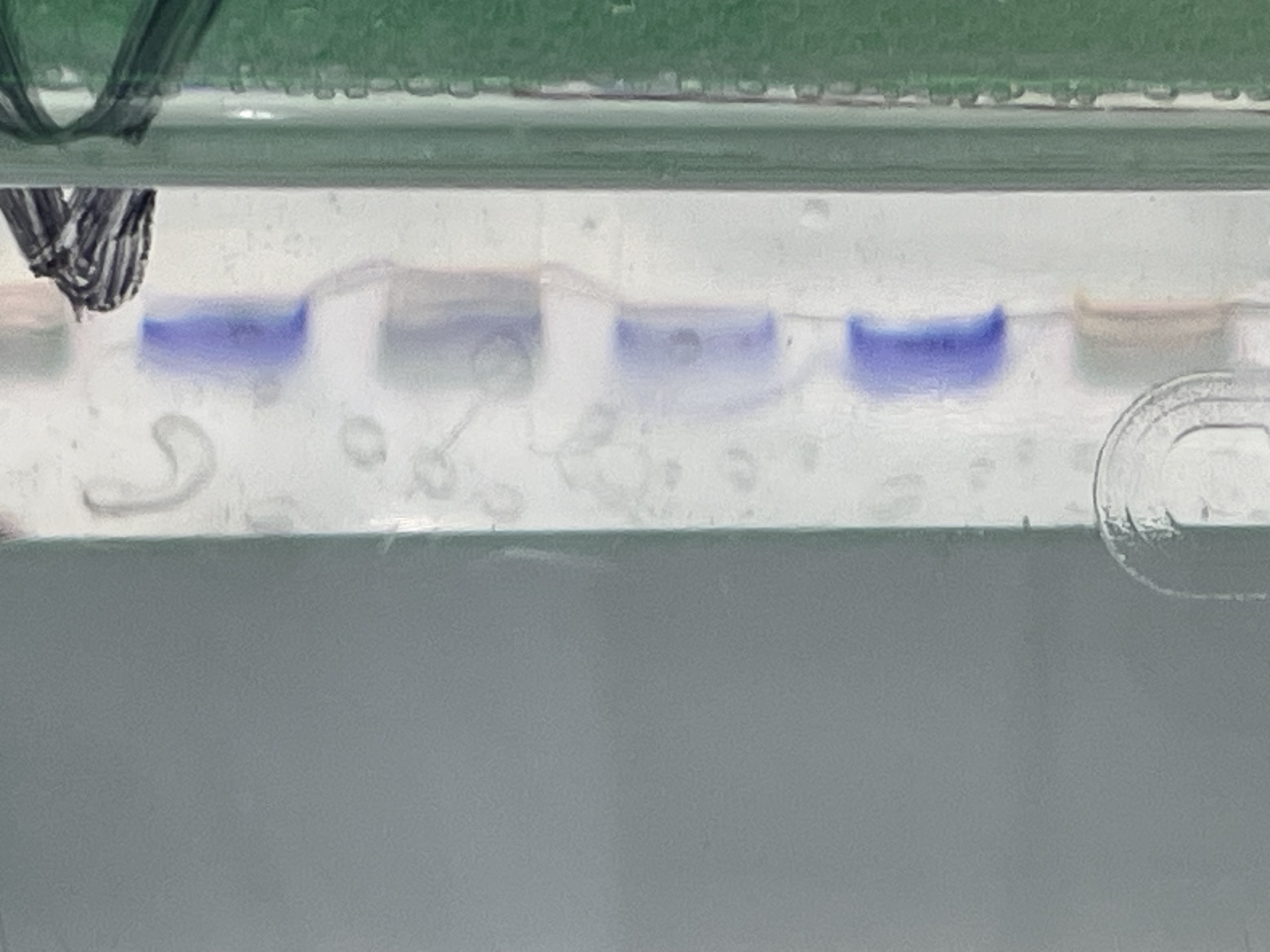 Il faut ensuite centrifuger le marqueur et les échantillons puis les déposer en alternance dans les puits (on commence au bord par la marqueur, puis protéines, marqueur...)